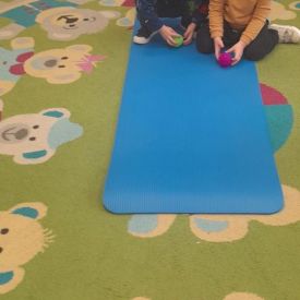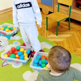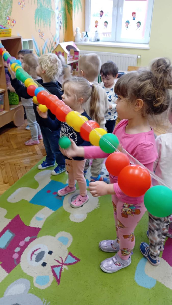 Ciekawym doświadczeniem była również zabawa z piłeczkami – dzieci przyklejały piłki do taśmy klejącej, ćwicząc sprawność manualną i precyzję ruchów.
