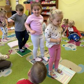 Serdecznie dziękujemy Rodzicom za zakup paneli, a mamie Adasia – pani Katarzynie Kozłowskiej-Brzoza za wykonanie ścieżki sensorycznej. Dzięki Państwa zaangażowaniu nasza sala wzbogaciła się o niezwykle wartościowe narzędzie wspierające rozwój dzieci.