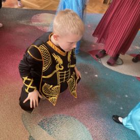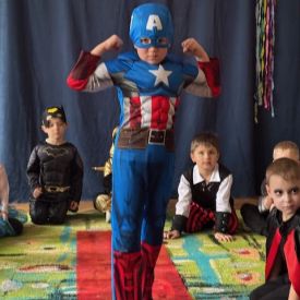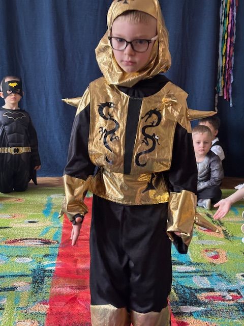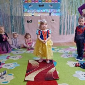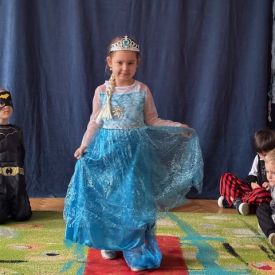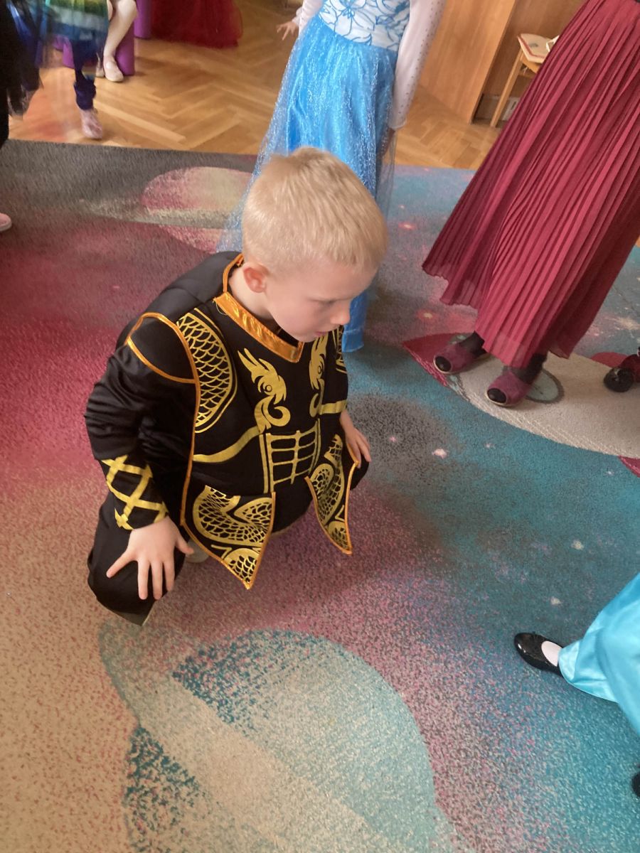 Bal rozpoczęliśmy od uroczystej sesji zdjęciowej, podczas której mali bohaterowie z dumą prezentowali swoje wspaniałe przebrania. Wśród nas pojawiły się księżniczki, superbohaterowie, zwierzątka oraz postacie z ulubionych bajek i filmów. Każde dziecko mogło poczuć się wyjątkowo – niczym gwiazda prawdziwego balu.