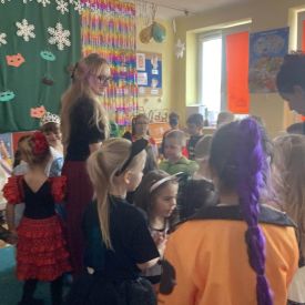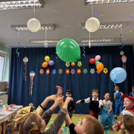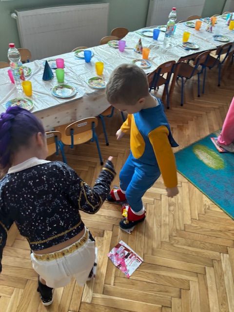 To był czas pełen uśmiechu, tańca i dziecięcej beztroski. Bal Karnawałowy po raz kolejny pokazał, jak wielką siłę ma wspólna zabawa i jak pięknie dzieci potrafią dzielić się radością. W naszych sercach pozostaną kolorowe wspomnienia, które jeszcze długo będą wywoływać uśmiech na twarzach. Z niecierpliwością czekamy na kolejne tak magiczne chwile.