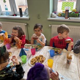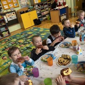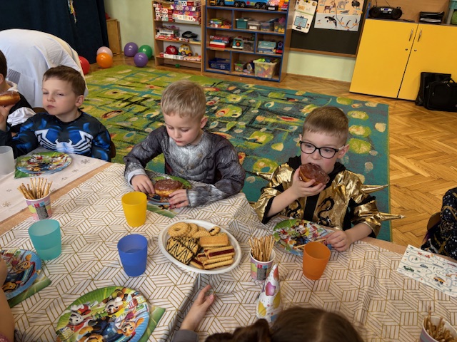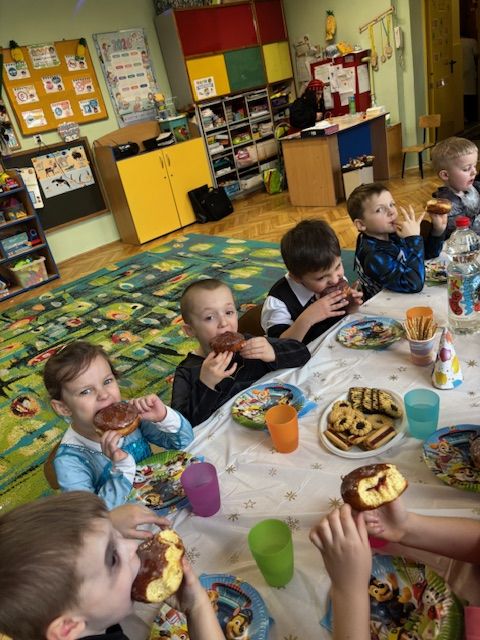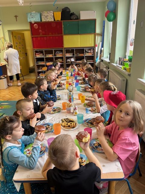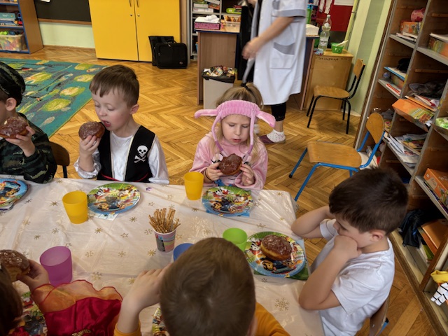 Tegoroczny bal zbiegł się z Tłustym Czwartkiem, dlatego nie mogło zabraknąć słodkiego akcentu. Serdecznie dziękujemy Radzie Rodziców za zakup pączków oraz innych pysznych słodkości. Dzięki Państwa zaangażowaniu mogliśmy wspólnie celebrować ten dzień w jeszcze bardziej radosnej i rodzinnej atmosferze.