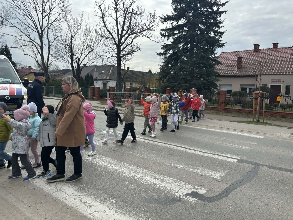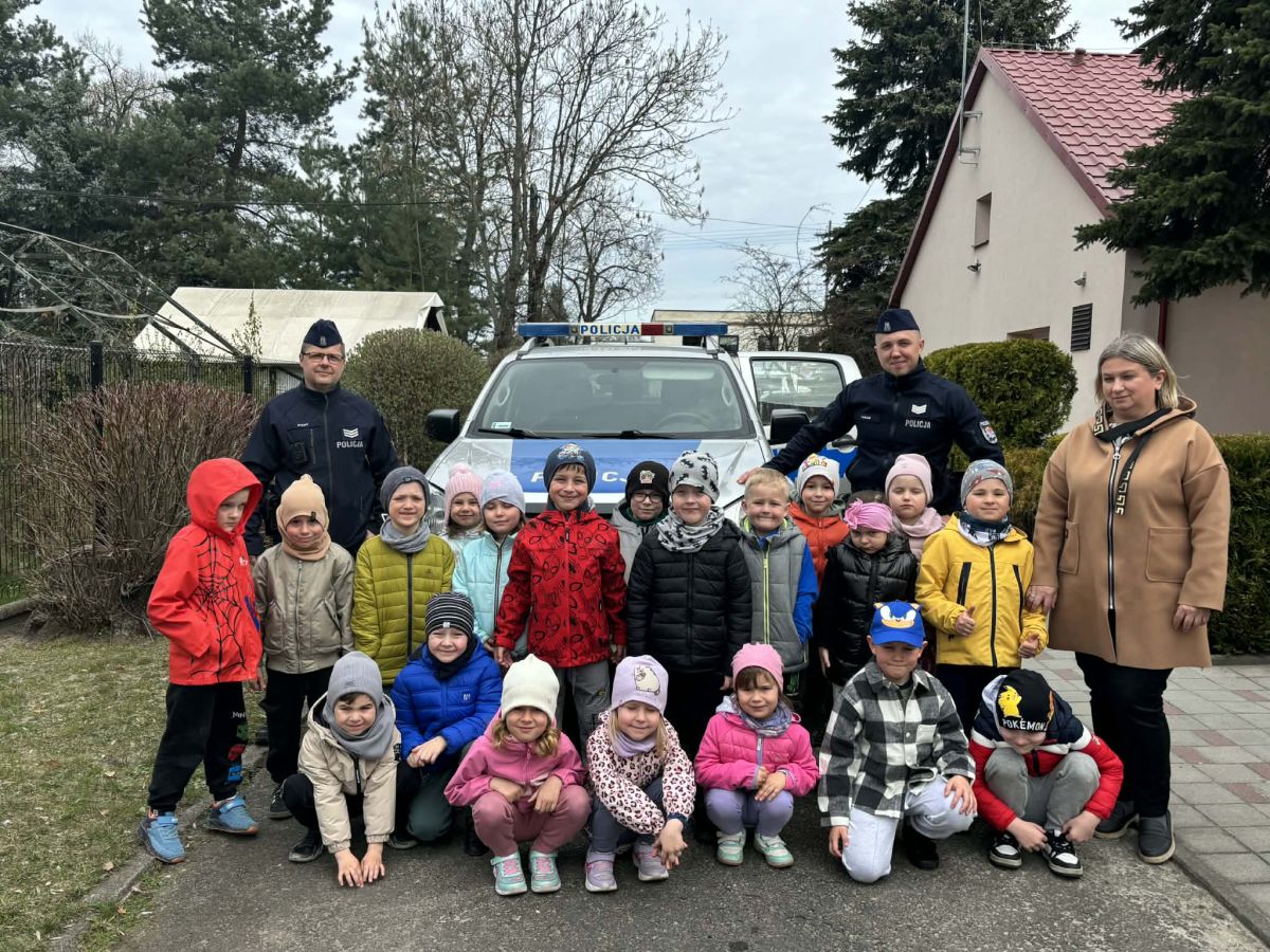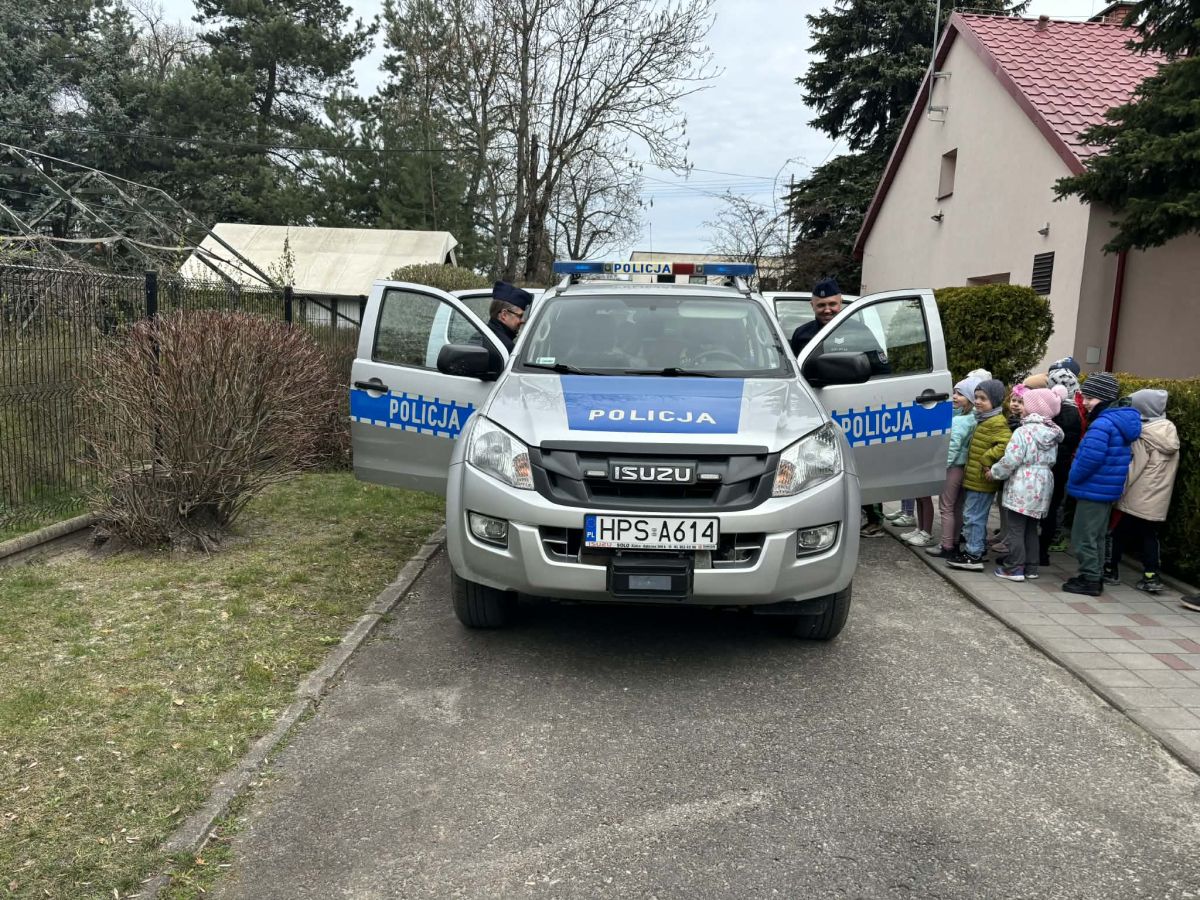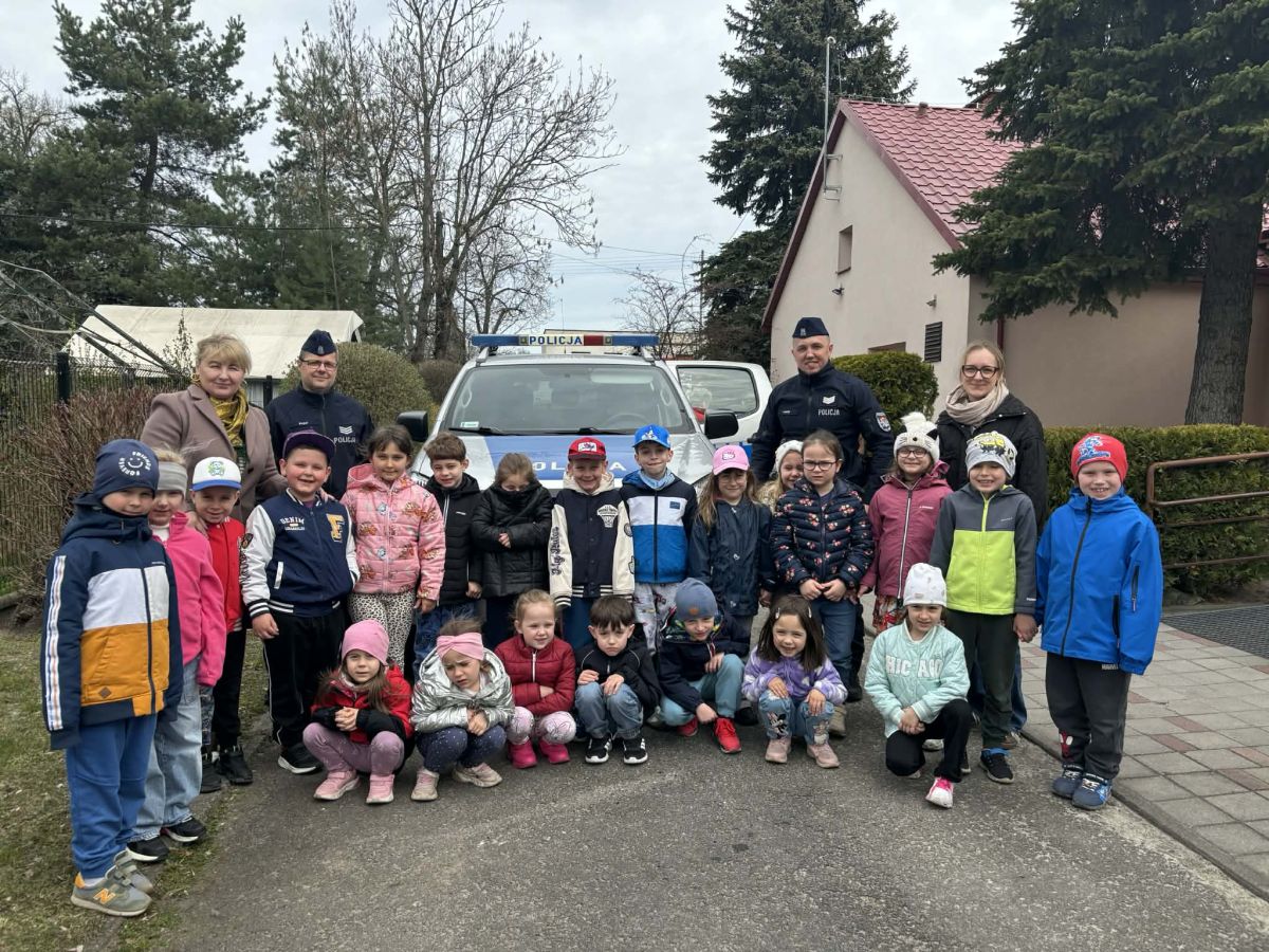 13 kwietnia 2026r. odbyło się spotkanie z policjantami poświęcone zasadom bezpieczeństwa na drodze. Podczas pogadanki dzieci dowiedziały się, jak bezpiecznie przechodzić przez ulicę, jak prawidłowo zachowywać się na przejściu dla pieszych oraz jak poruszać się podczas spacerów i wycieczek. Funkcjonariusze przypomnieli również numery alarmowe i wyjaśnili, w jakich sytuacjach należy z nich korzystać.