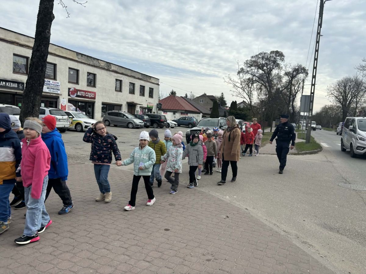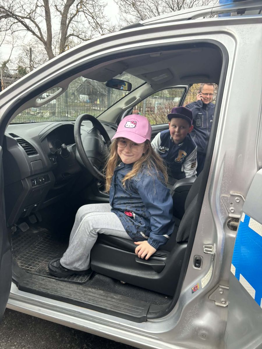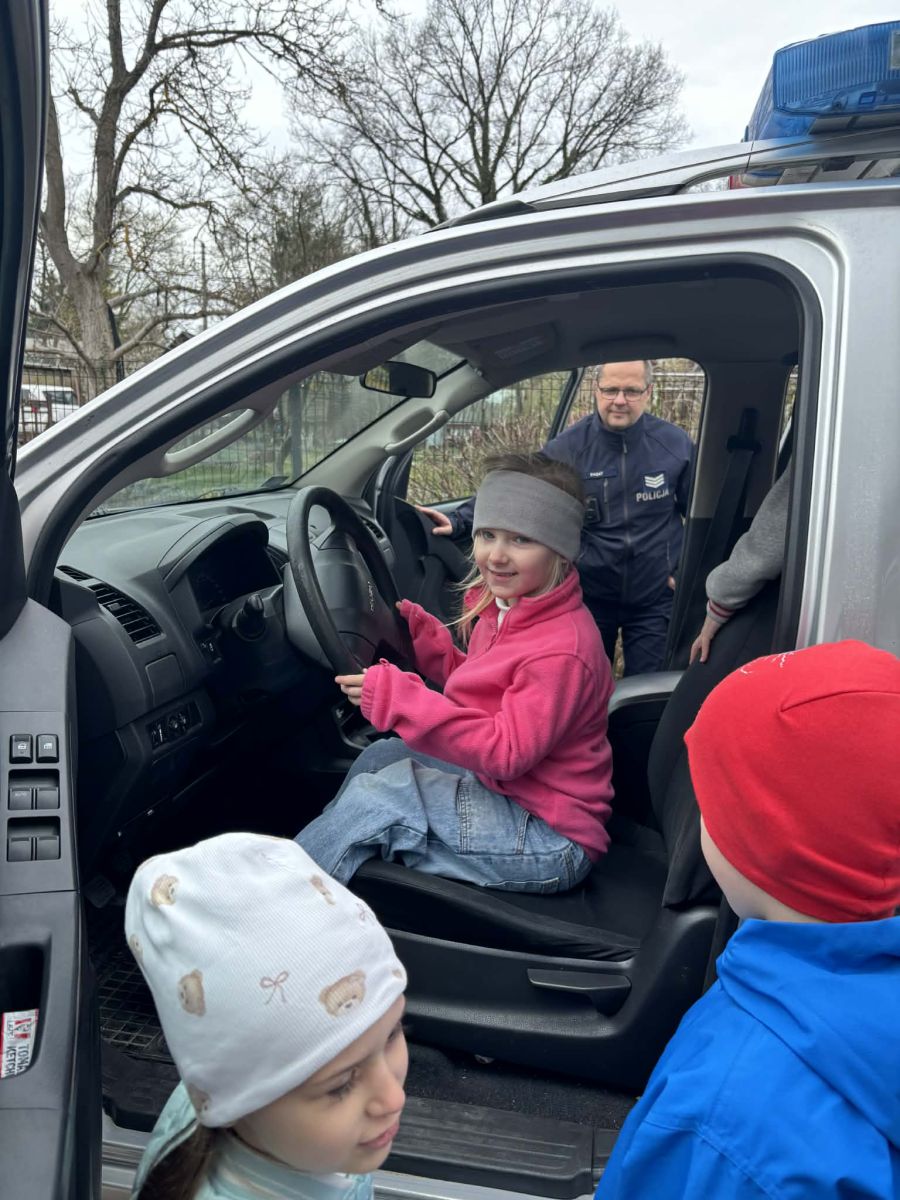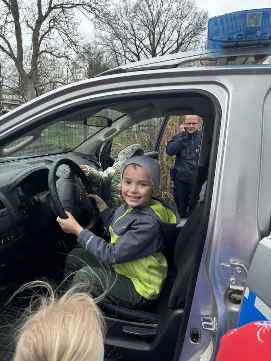 13 kwietnia 2026r. odbyło się spotkanie z policjantami poświęcone zasadom bezpieczeństwa na drodze. Podczas pogadanki dzieci dowiedziały się, jak bezpiecznie przechodzić przez ulicę, jak prawidłowo zachowywać się na przejściu dla pieszych oraz jak poruszać się podczas spacerów i wycieczek. Funkcjonariusze przypomnieli również numery alarmowe i wyjaśnili, w jakich sytuacjach należy z nich korzystać.