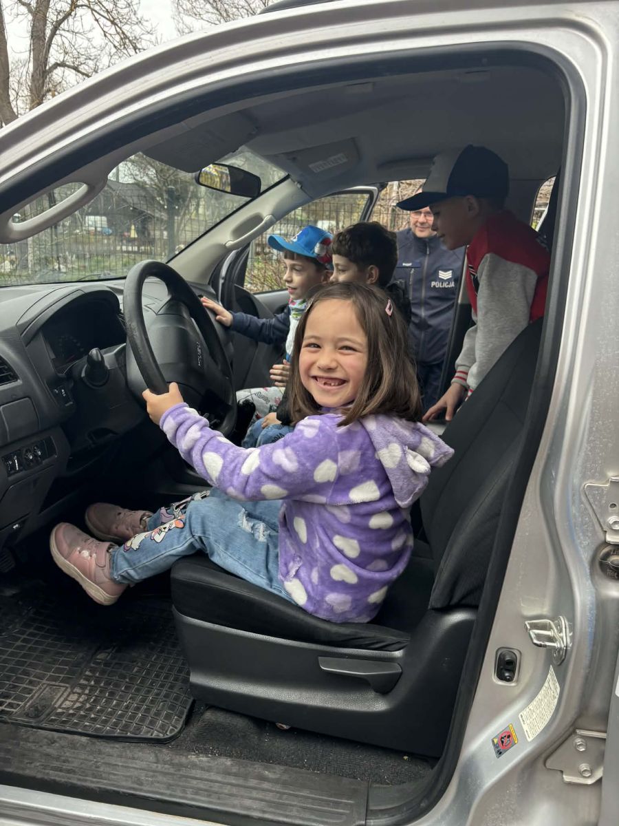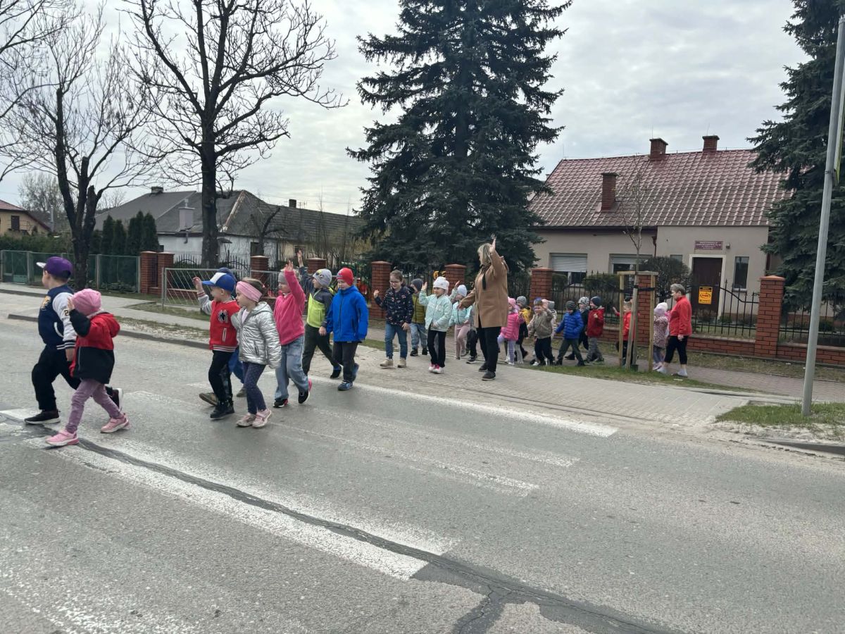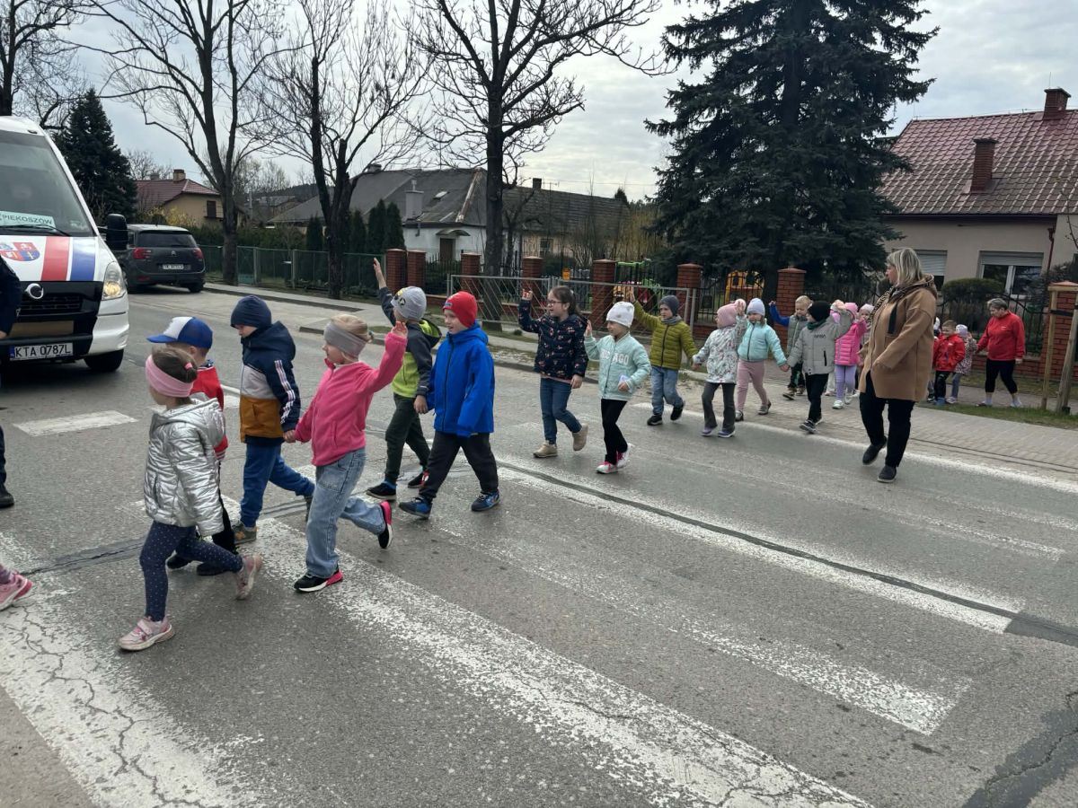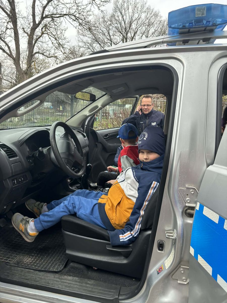 13 kwietnia 2026r. odbyło się spotkanie z policjantami poświęcone zasadom bezpieczeństwa na drodze. Podczas pogadanki dzieci dowiedziały się, jak bezpiecznie przechodzić przez ulicę, jak prawidłowo zachowywać się na przejściu dla pieszych oraz jak poruszać się podczas spacerów i wycieczek. Funkcjonariusze przypomnieli również numery alarmowe i wyjaśnili, w jakich sytuacjach należy z nich korzystać.