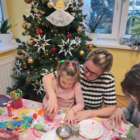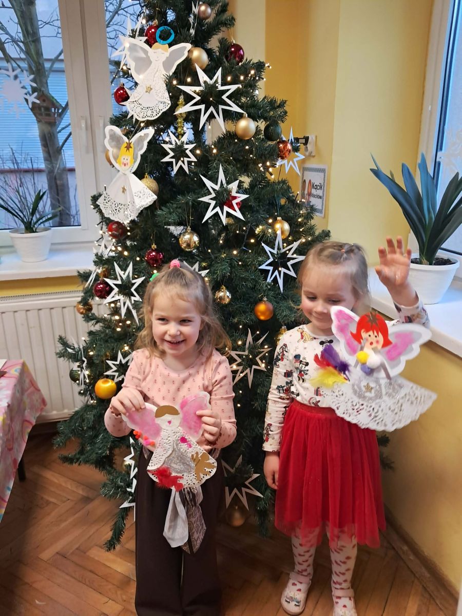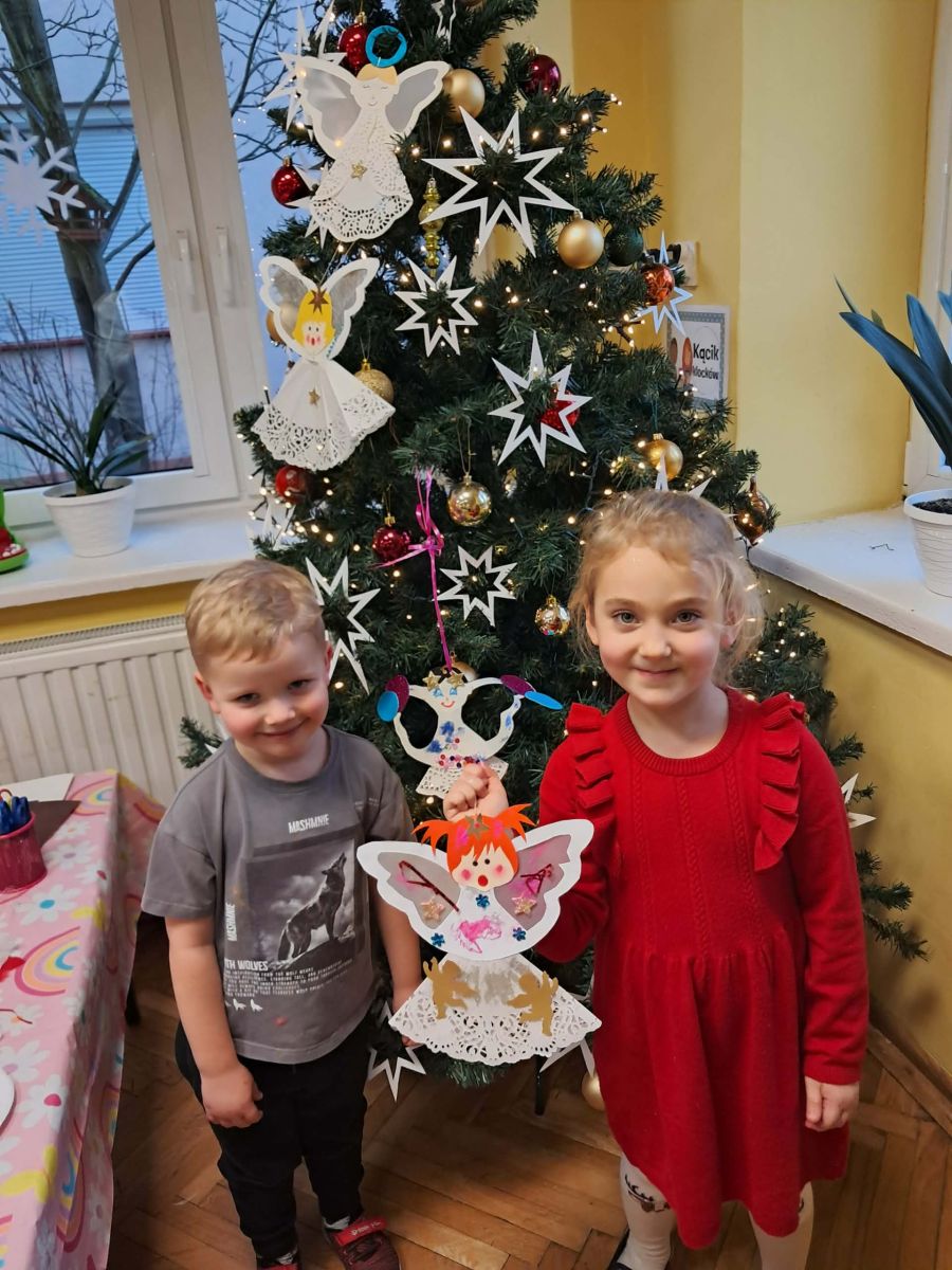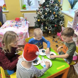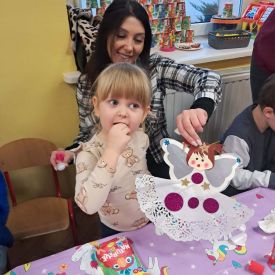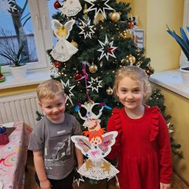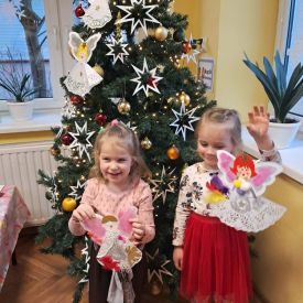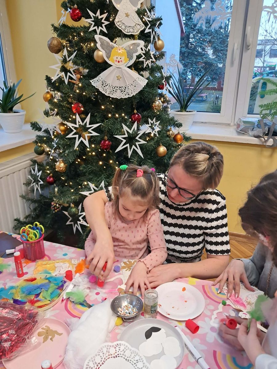 Po degustacji świątecznych wypieków wszyscy z zapałem zabrali się do wykonania bardzo efektownych i pięknych Aniołów. Świąteczne spotkanie z udziałem rodzin naszych przedszkolaków było doskonałą okazją do zacieśniania więzi oraz integracji środowiska przedszkolnego.