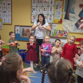 W dniu 11 grudnia 2025 r. do sali zajęć grupy II licznie przybyli rodzice, aby wspólnie wprowadzić się w radosny nastrój i poczuć magię zbliżających się Świąt Bożego Narodzenia.