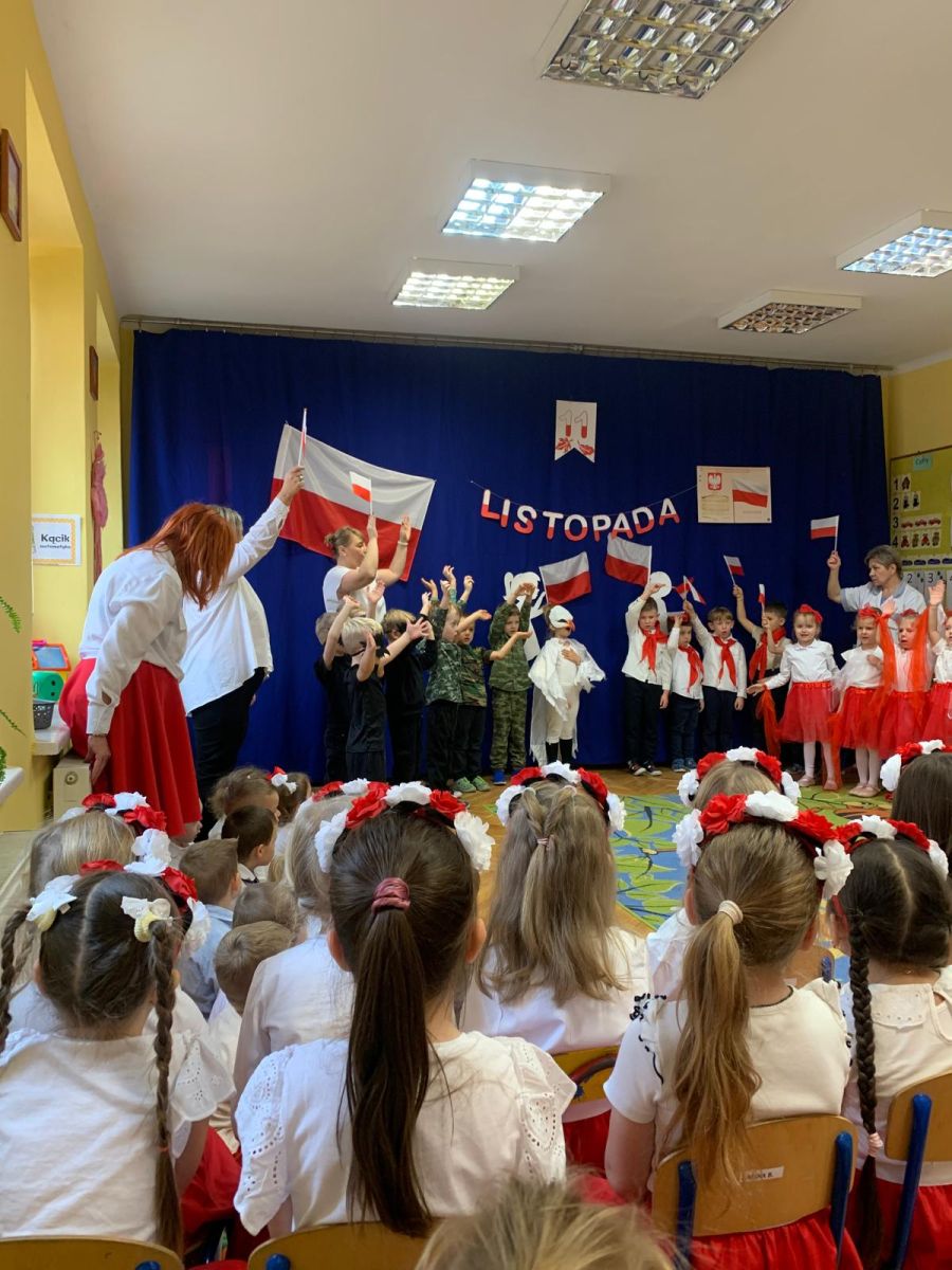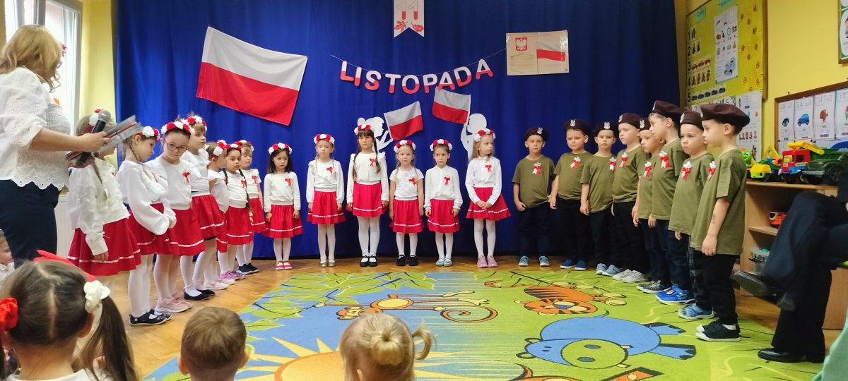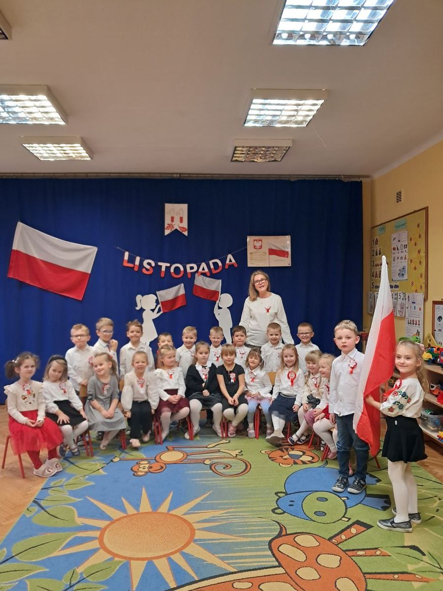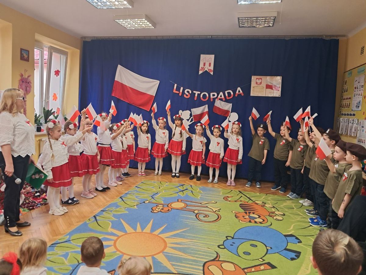 Listopad to miesiąc, w którym w sposób szczególny zwracamy uwagę na patriotyczną edukację w przedszkolach. To czas promowania symboli narodowych — flagi, hymnu i godła — oraz uczenia dzieci ich rozpoznawania i rozumienia. Dzięki temu najmłodsi budują poczucie tożsamości i identyfikacji z Ojczyzną. Jak każdego roku, nasze przedszkole włączyło się w ogólnopolską akcję „Szkoła do hymnu”, zorganizowaną przez Ministerstwo Edukacji i Nauki.