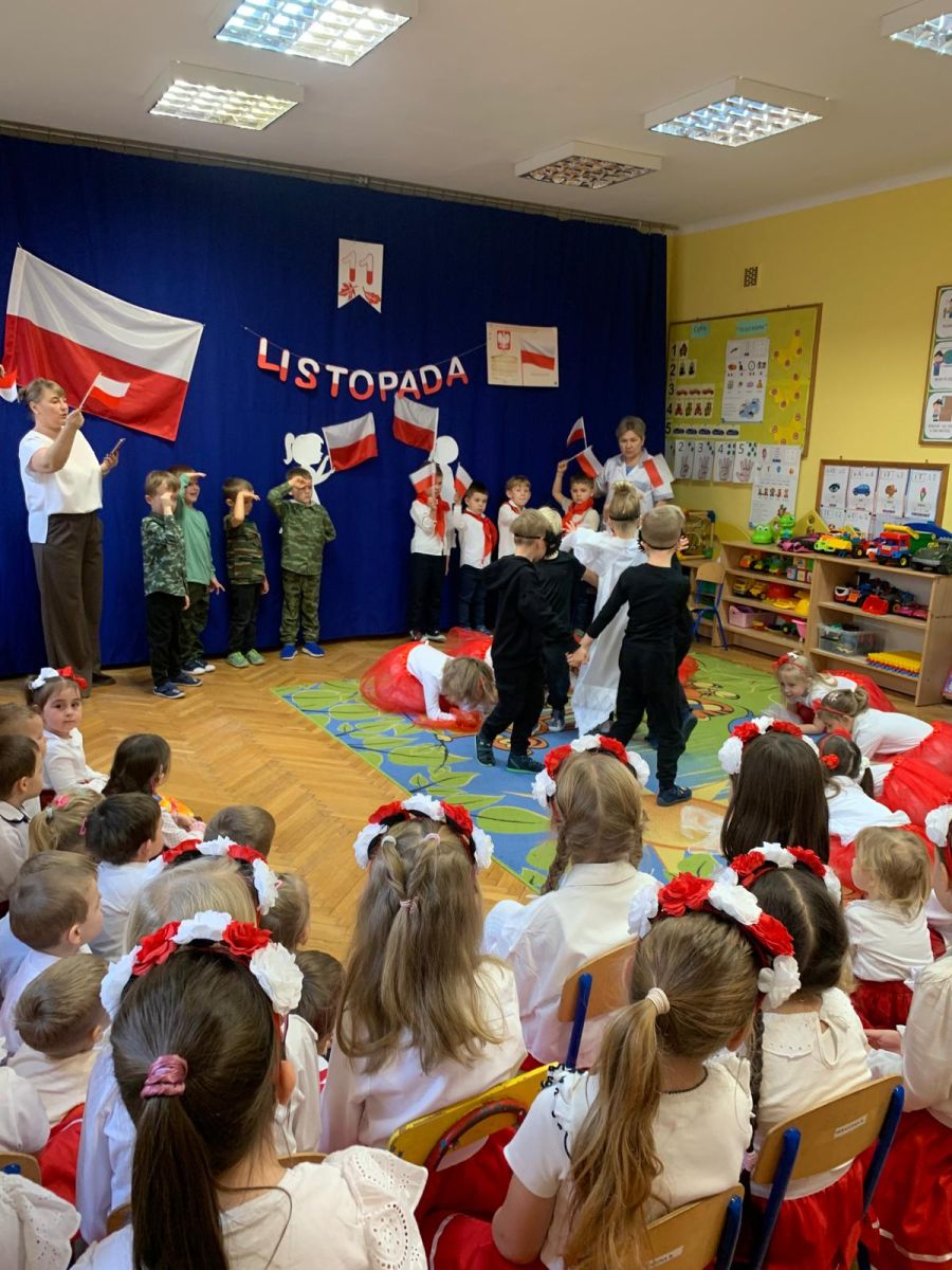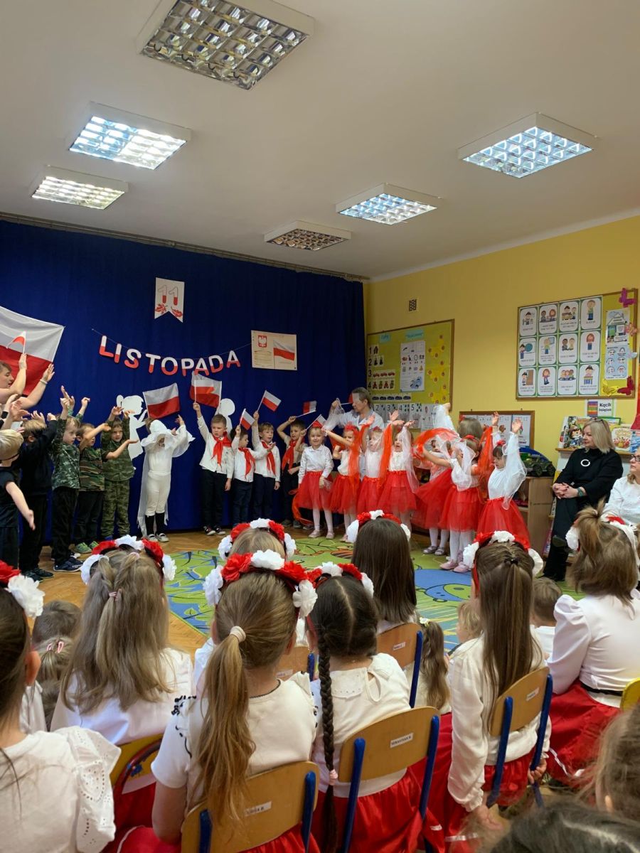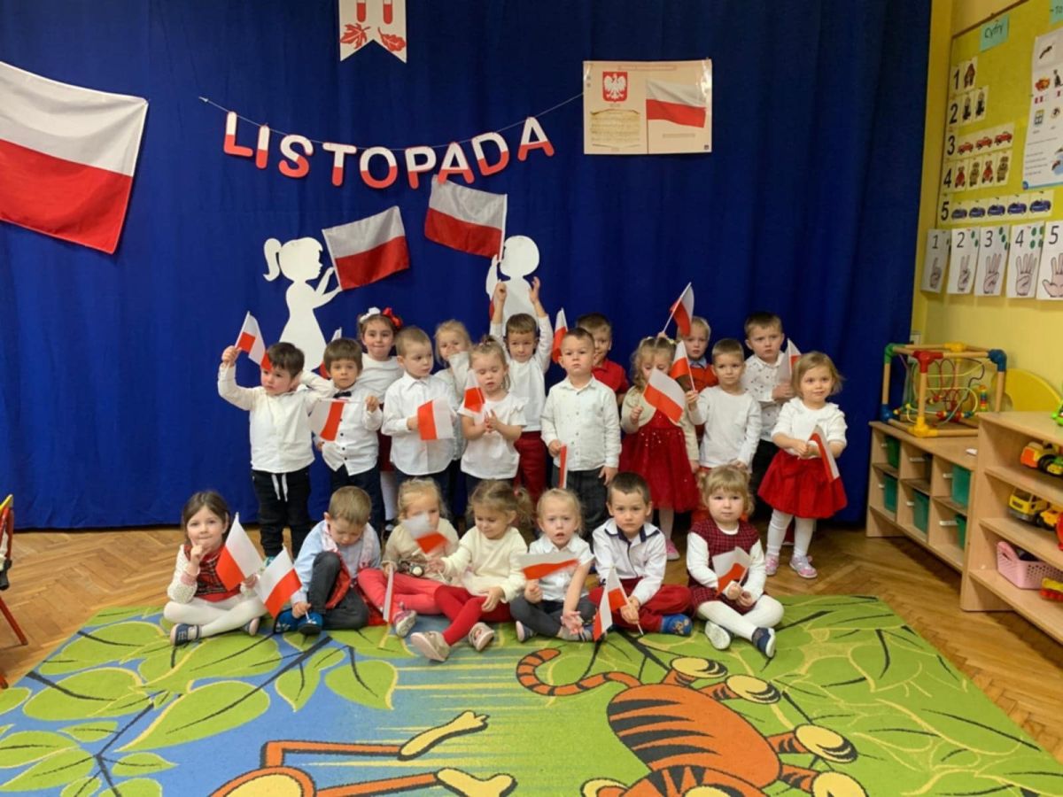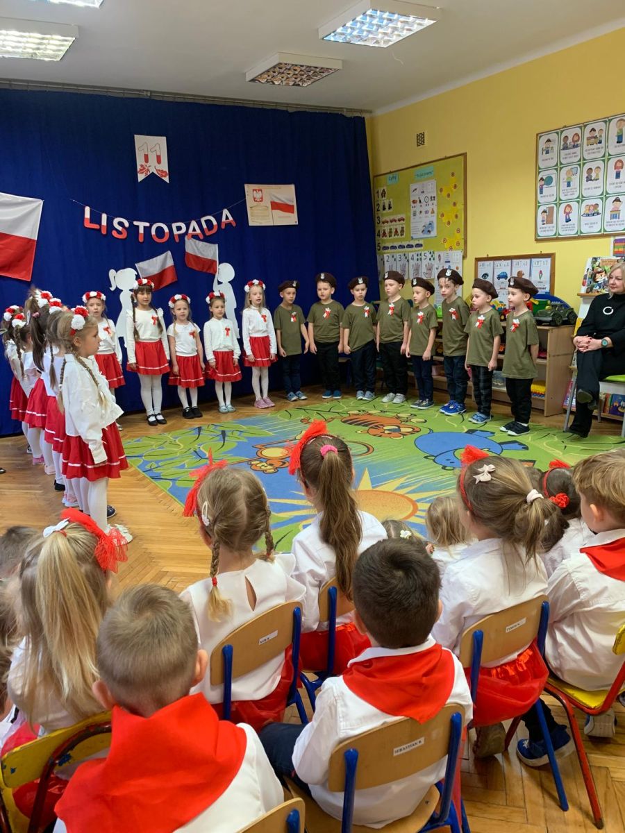 Listopad to miesiąc, w którym w sposób szczególny zwracamy uwagę na patriotyczną edukację w przedszkolach. To czas promowania symboli narodowych — flagi, hymnu i godła — oraz uczenia dzieci ich rozpoznawania i rozumienia. Dzięki temu najmłodsi budują poczucie tożsamości i identyfikacji z Ojczyzną. Jak każdego roku, nasze przedszkole włączyło się w ogólnopolską akcję „Szkoła do hymnu”, zorganizowaną przez Ministerstwo Edukacji i Nauki.