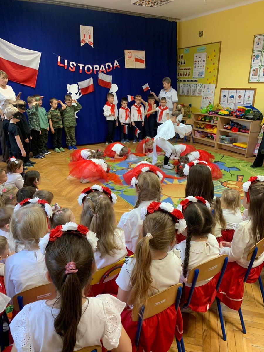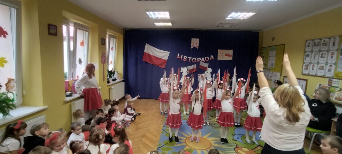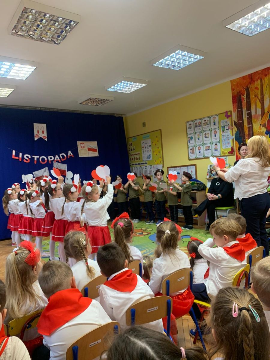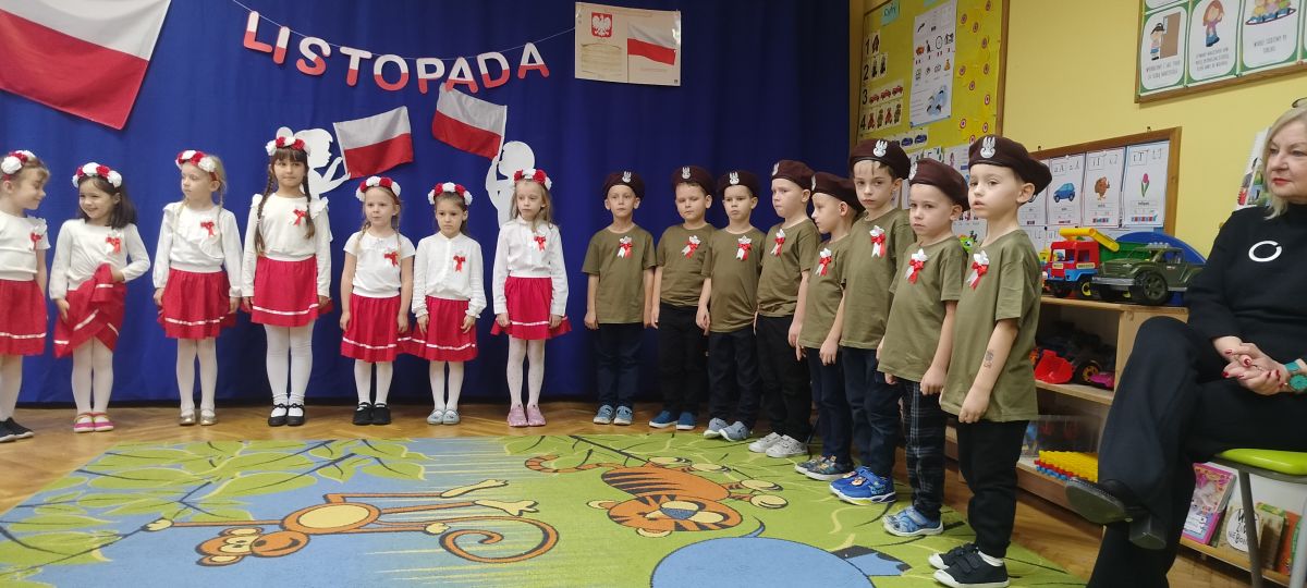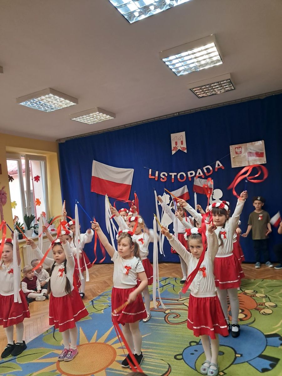 Listopad to miesiąc, w którym w sposób szczególny zwracamy uwagę na patriotyczną edukację w przedszkolach. To czas promowania symboli narodowych — flagi, hymnu i godła — oraz uczenia dzieci ich rozpoznawania i rozumienia. Dzięki temu najmłodsi budują poczucie tożsamości i identyfikacji z Ojczyzną. Jak każdego roku, nasze przedszkole włączyło się w ogólnopolską akcję „Szkoła do hymnu”, zorganizowaną przez Ministerstwo Edukacji i Nauki.
