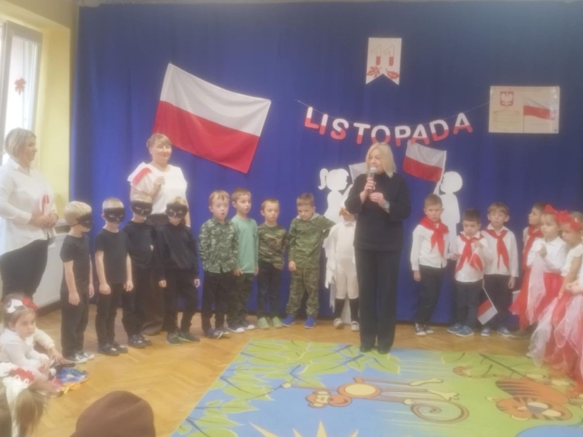 Zanim rozpoczęły się występy, głos zabrała pani dyrektor, która zadała dzieciom ważne pytanie: „Co to jest niepodległość?”. Krótkie rozmowy i odpowiedzi najmłodszych stały się pięknym wprowadzeniem do dalszej części uroczystości, pomagając im lepiej zrozumieć sens świętowania 11 listopada.
