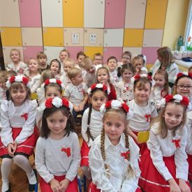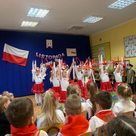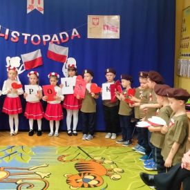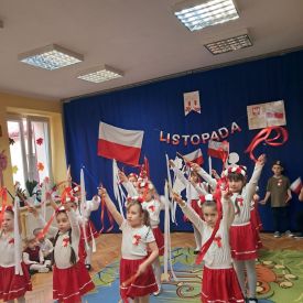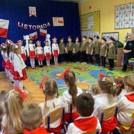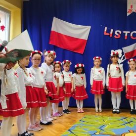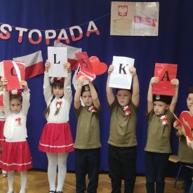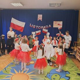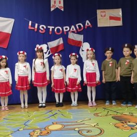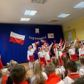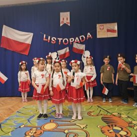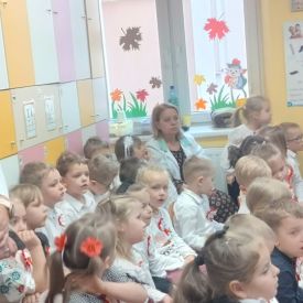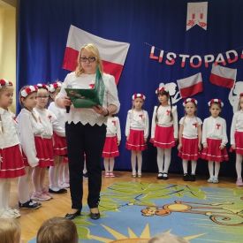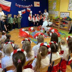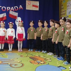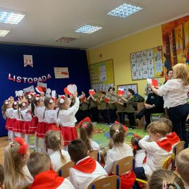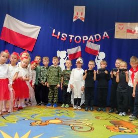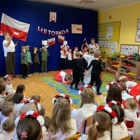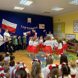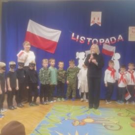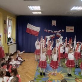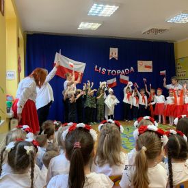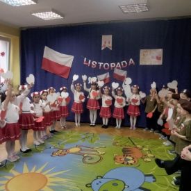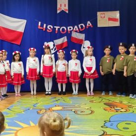 14 listopada w naszym przedszkolu odbył się uroczysty apel z okazji Narodowego Święta Niepodległości. Całą uroczystość pięknie poprowadziły dzieci z grupy III i IV.