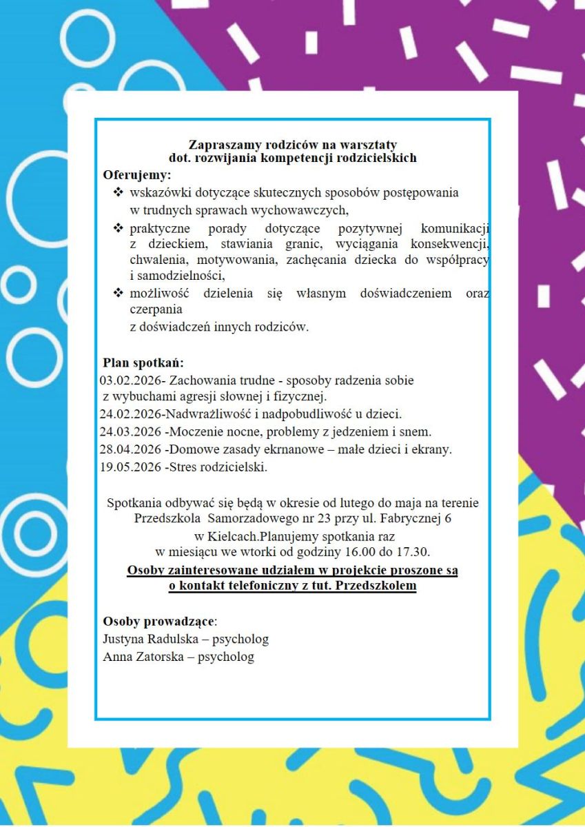 WARSZTATY DLA RODZICÓW