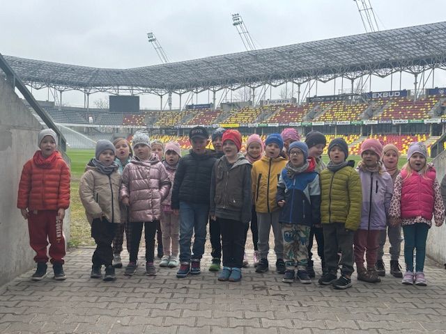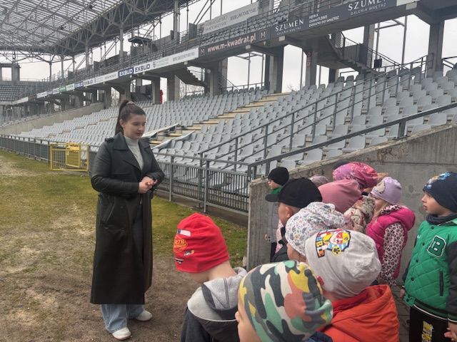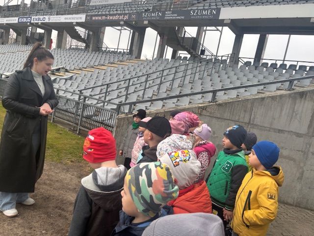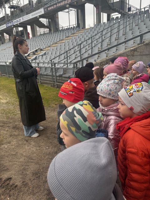 Wspólna wycieczka była nie tylko okazją do poznania stadionu i świata sportu, lecz także do odkrywania piękna przyrody i pierwszych oznak nadchodzącej wiosny. Radosne rozmowy, ciekawostki, zadawane pytania oraz wspólne obserwacje sprawiły, że był to dzień pełen nowych doświadczeń i niezapomnianych chwil, który na długo pozostanie w pamięci naszych małych odkrywców.