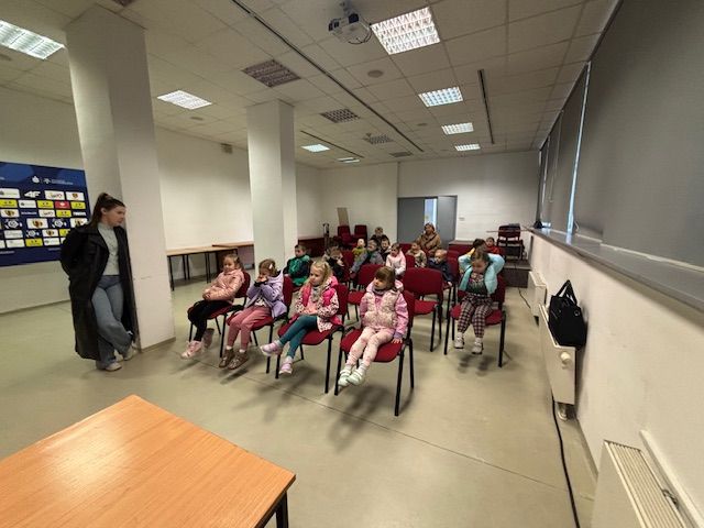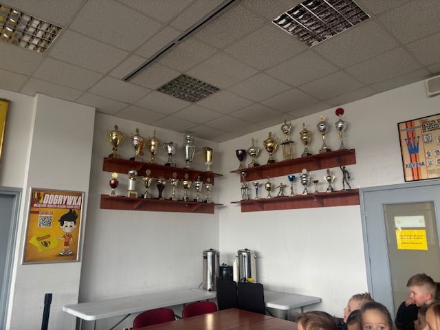 Podczas zwiedzania dzieci miały okazję poznać historię stadionu oraz dowiedzieć się, jak powstał i jak wygląda jego codzienne funkcjonowanie. Pani przewodnik opowiadała o ciekawostkach związanych z klubem Korona Kielce oraz o pracy osób, które dbają o przygotowanie stadionu do meczów.