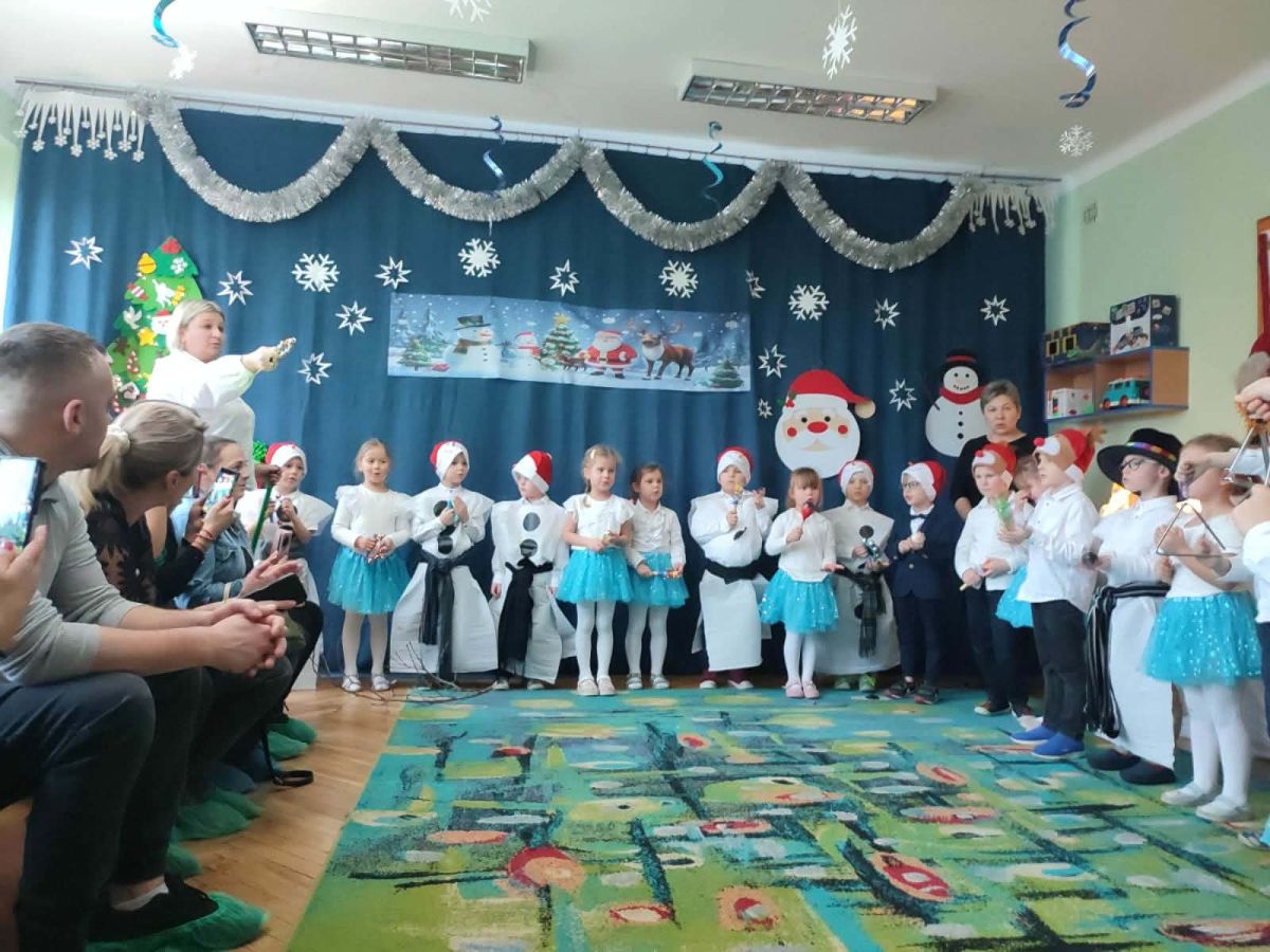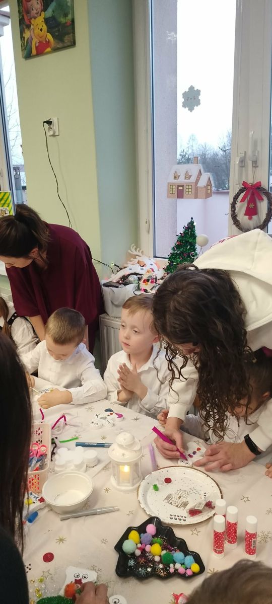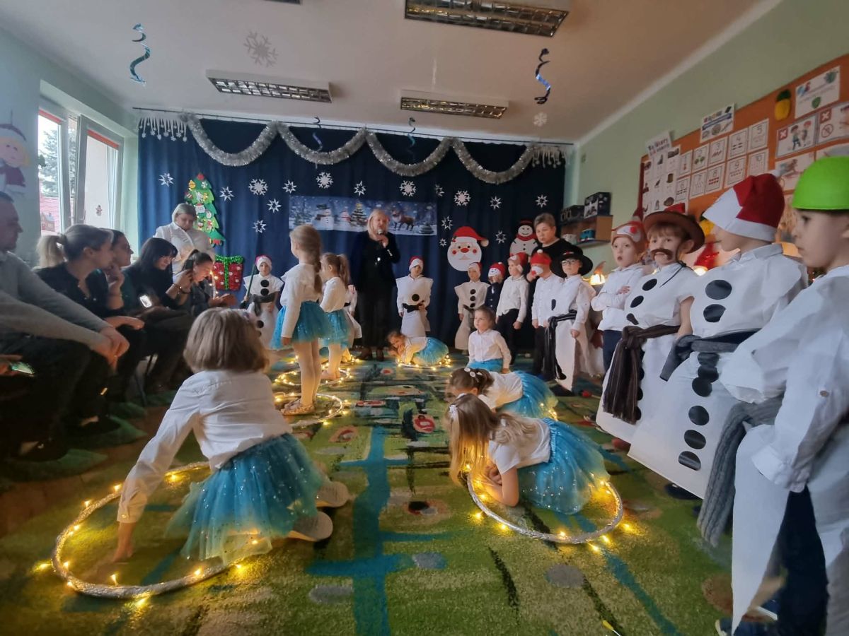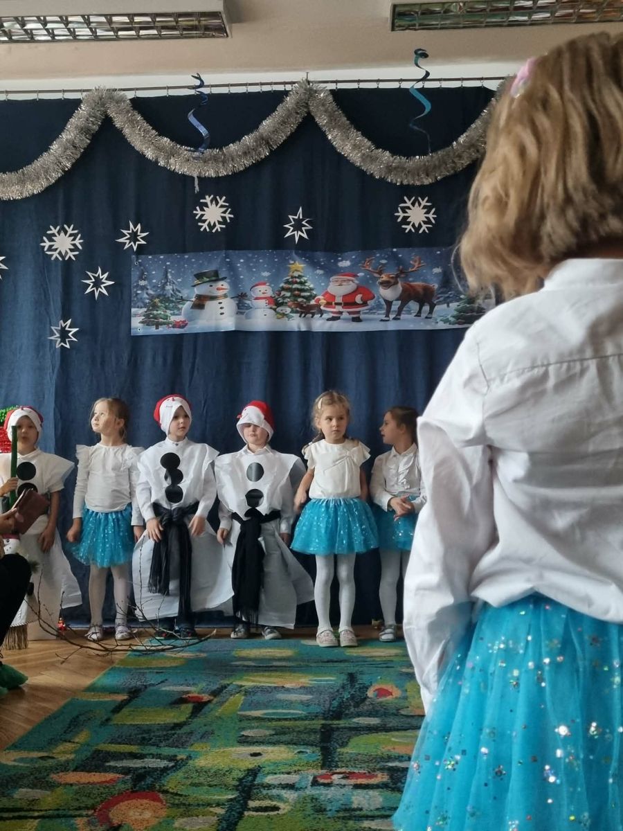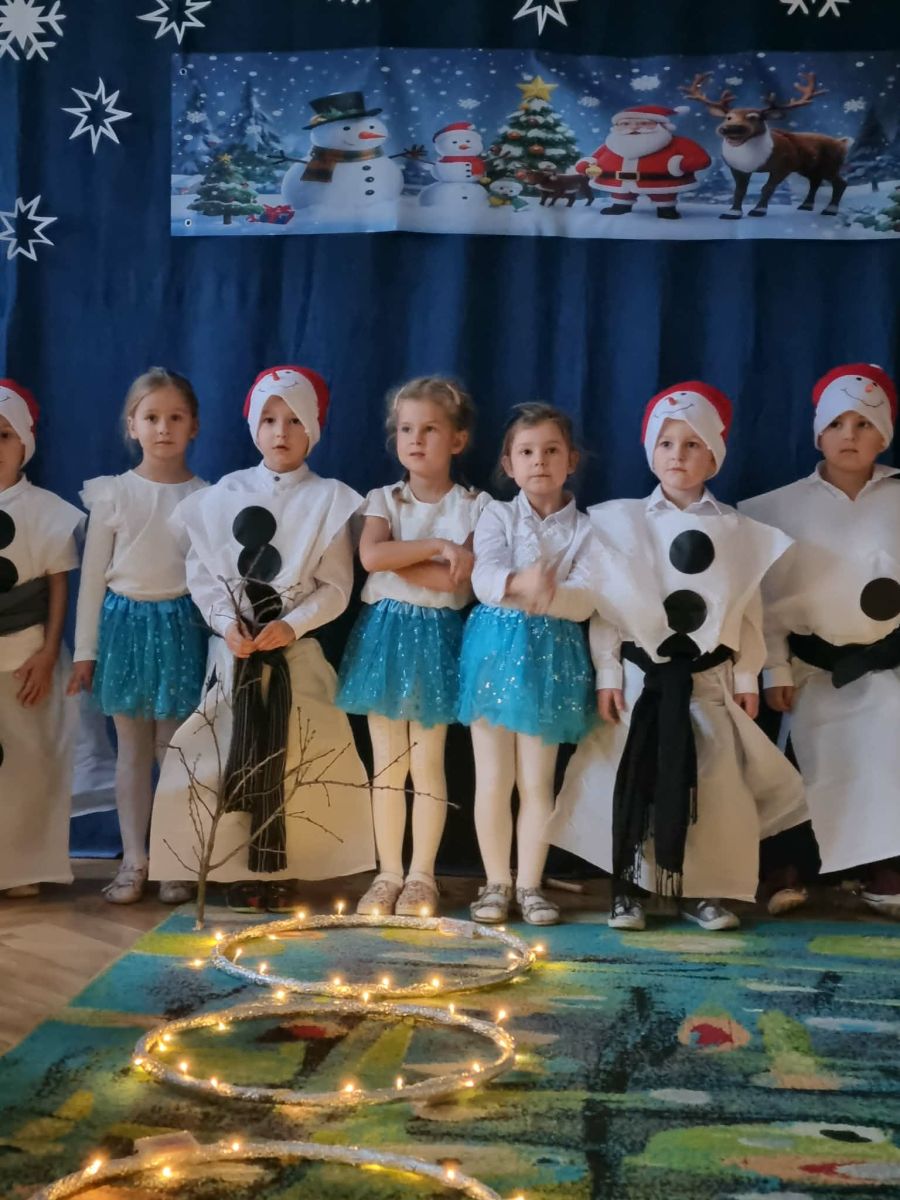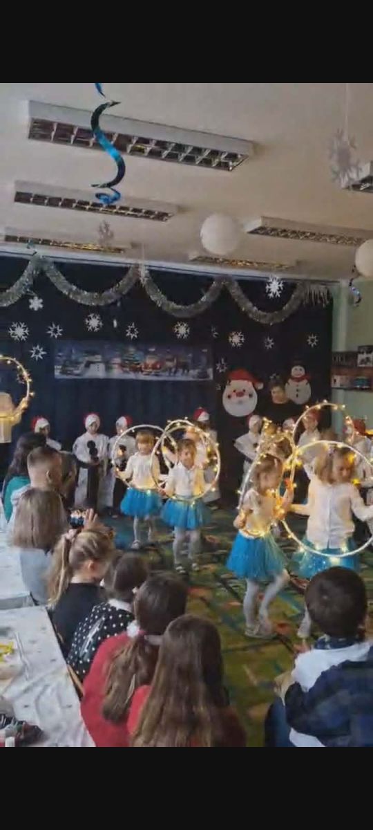 W dniu 18.12.2025 roku w grupie III odbyły się warsztaty i występy świąteczne, które wprowadziły dzieci i rodziców w prawdziwie magiczny nastrój Bożego Narodzenia. Spotkanie rozpoczęły dziewczynki, prezentując zachwycający taniec Śnieżynek z kołem oplecionym migoczącymi światełkami, który oczarował zgromadzonych gości. Następnie dzieci wspólnie zaśpiewały i zagrały kolędę „Przybieżeli do Betlejem”. Później zabrzmiała radośnie piosenka o Mikołaju, a sala wypełniła się śmiechem podczas wesołej improwizacji „Dziewięciu bałwanków”. Na zakończenie dzieci wraz z rodzicami uczestniczyły w warsztatach plastycznych, tworząc piękne, świąteczne ozdoby na choinkę. Serdecznie dziękujemy Rodzicom za zaangażowanie oraz zakup pierniczków, które stanowiły pyszną, świąteczną przekąskę i dodatkowo umiliły wspólnie spędzony czas. To wyjątkowe spotkanie pozostawiło w sercach wszystkich ciepłe i niezapomniane wspomnienia, pełne radości, śmiechu i prawdziwej magii Świąt.