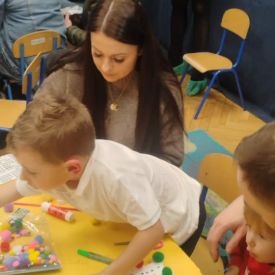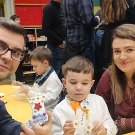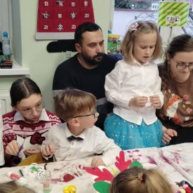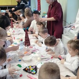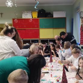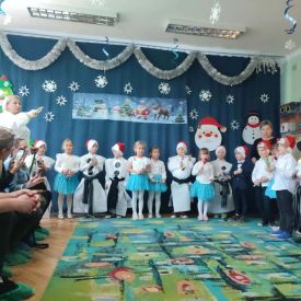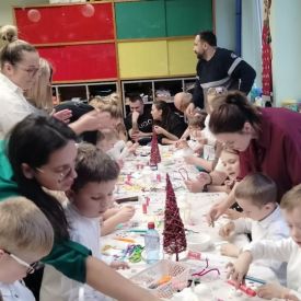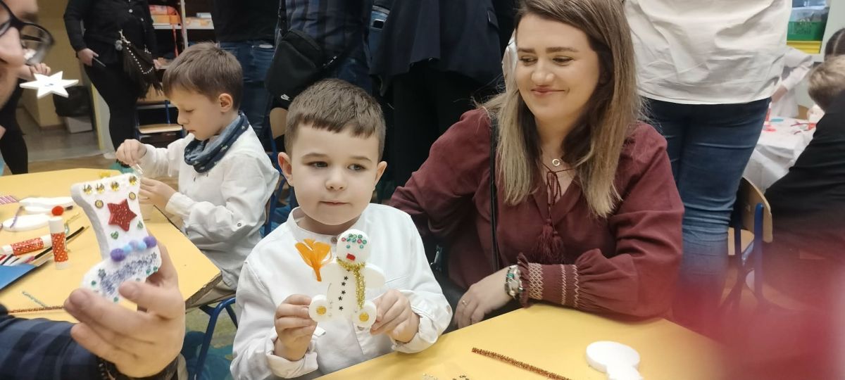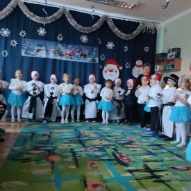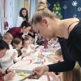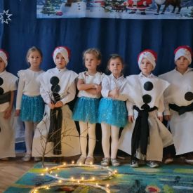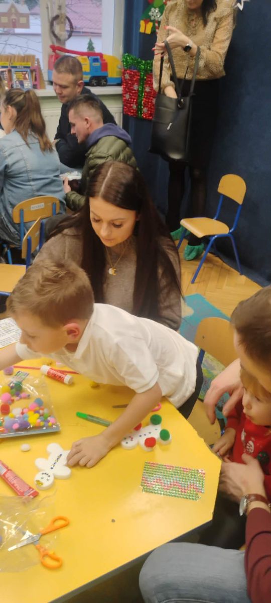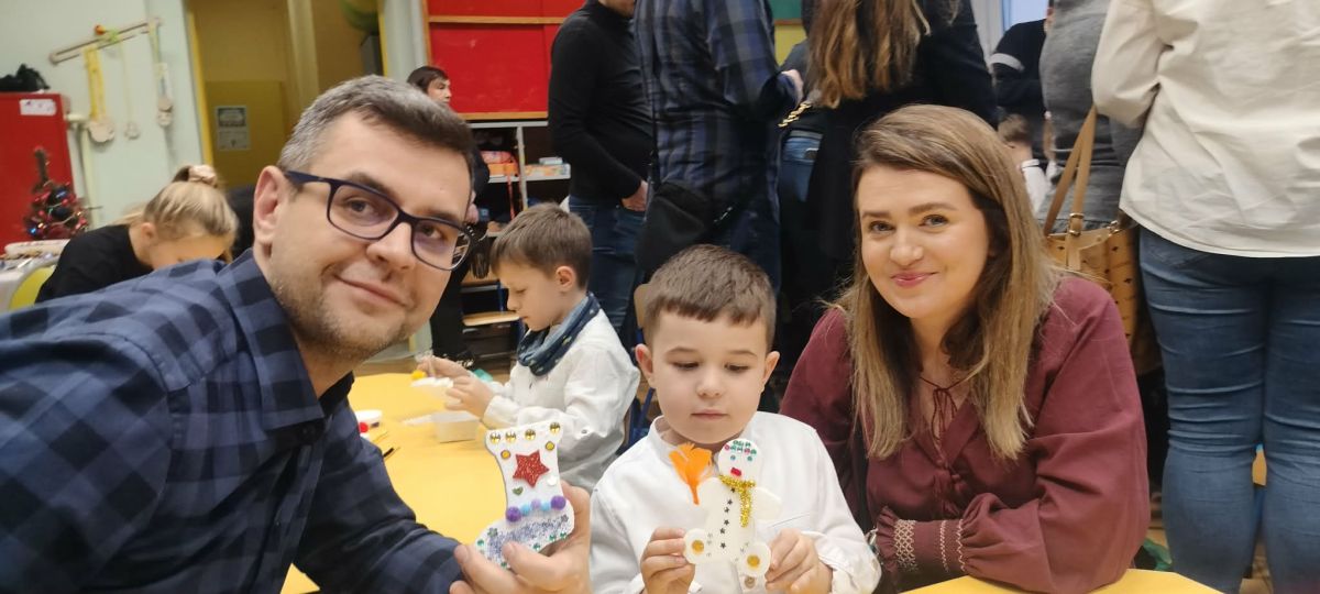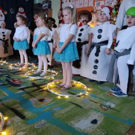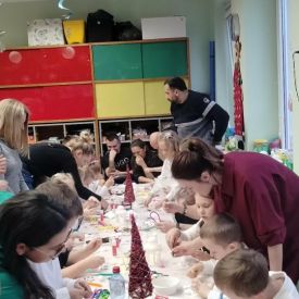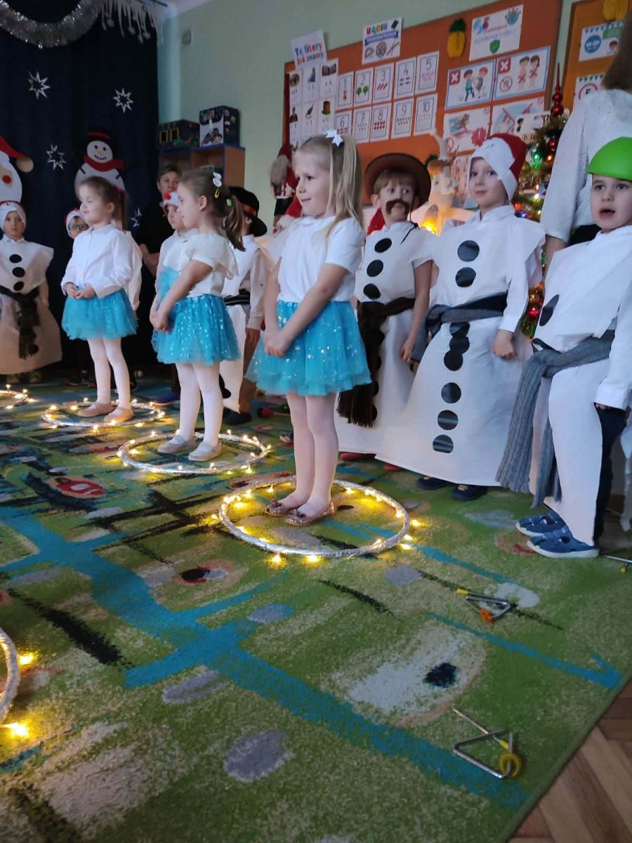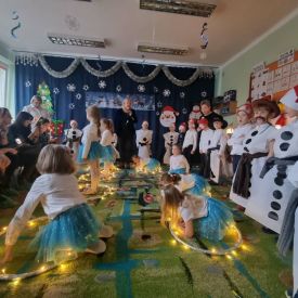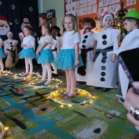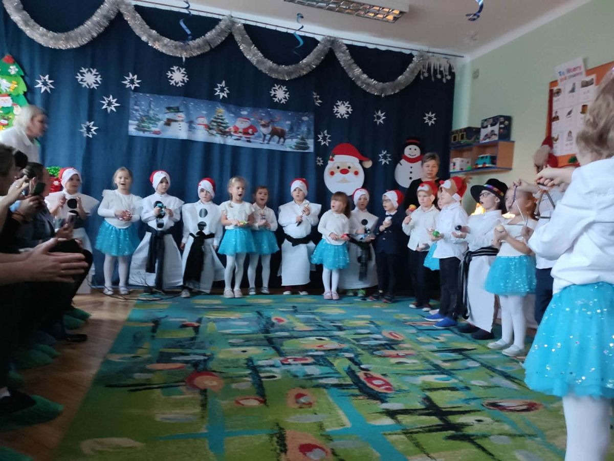 W dniu 18.12.2025 roku w grupie III odbyły się warsztaty i występy świąteczne, które wprowadziły dzieci i rodziców w prawdziwie magiczny nastrój Bożego Narodzenia. Spotkanie rozpoczęły dziewczynki, prezentując zachwycający taniec Śnieżynek z kołem oplecionym migoczącymi światełkami, który oczarował zgromadzonych gości. Następnie dzieci wspólnie zaśpiewały i zagrały kolędę „Przybieżeli do Betlejem”. Później zabrzmiała radośnie piosenka o Mikołaju, a sala wypełniła się śmiechem podczas wesołej improwizacji „Dziewięciu bałwanków”. Na zakończenie dzieci wraz z rodzicami uczestniczyły w warsztatach plastycznych, tworząc piękne, świąteczne ozdoby na choinkę. Serdecznie dziękujemy Rodzicom za zaangażowanie oraz zakup pierniczków, które stanowiły pyszną, świąteczną przekąskę i dodatkowo umiliły wspólnie spędzony czas. To wyjątkowe spotkanie pozostawiło w sercach wszystkich ciepłe i niezapomniane wspomnienia, pełne radości, śmiechu i prawdziwej magii Świąt.