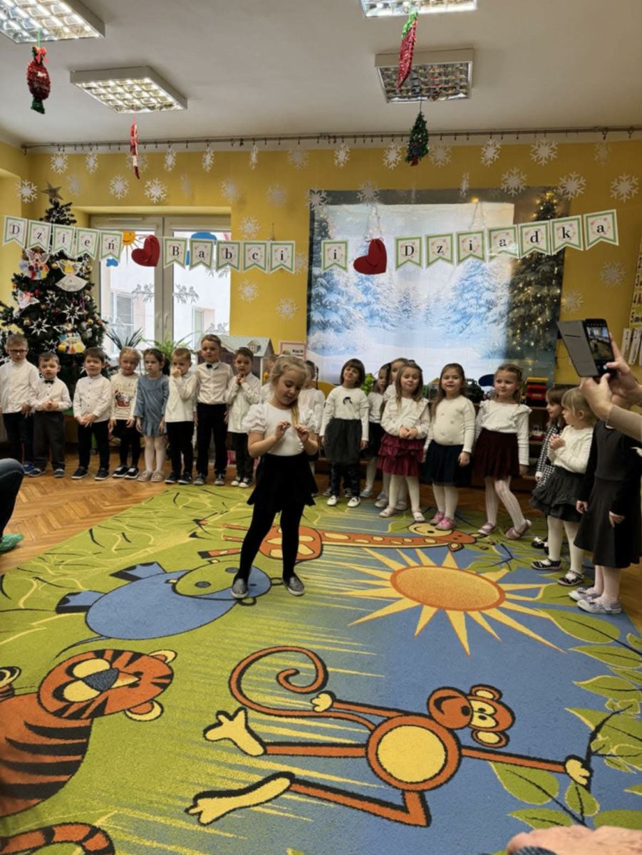 Każdego dnia dzieci z ogromną radością i zaangażowaniem oczekiwały na przybycie swoich Babć i Dziadków. Przedszkolaki zaprezentowały przygotowane specjalnie na tę okazję programy artystyczne – wiersze, piosenki oraz tańce – wkładając w swoje występy wiele serca i emocji.