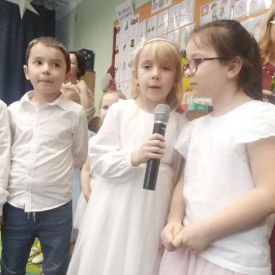 Po części artystycznej dzieci składały życzenia oraz wręczały upominki, wyrażając w ten sposób wdzięczność za miłość, cierpliwość i troskę, jaką otrzymują od swoich bliskich.