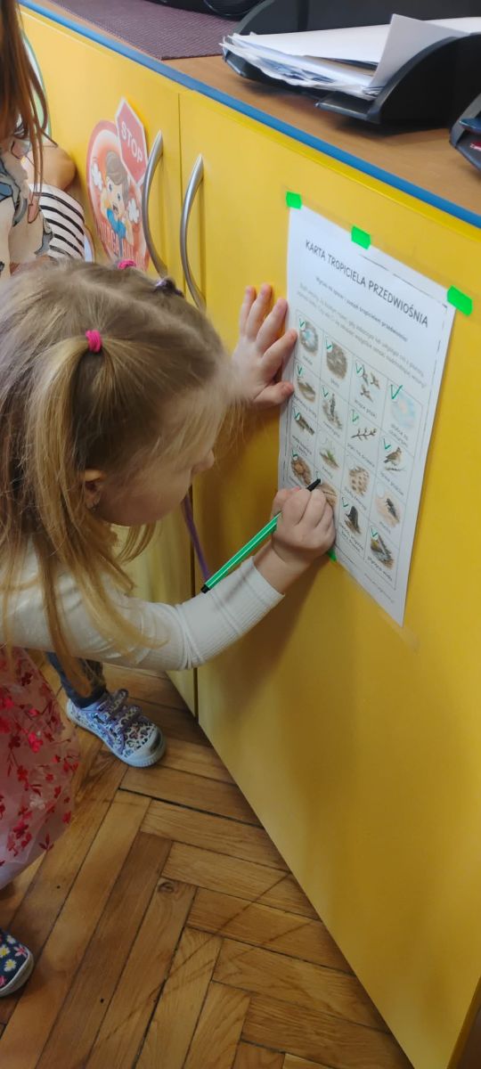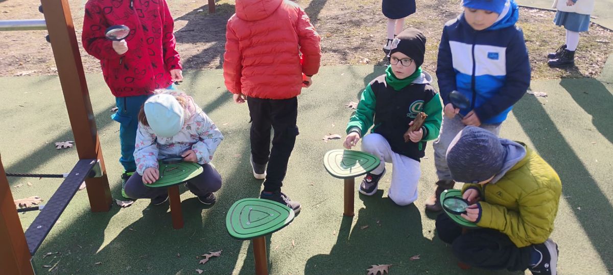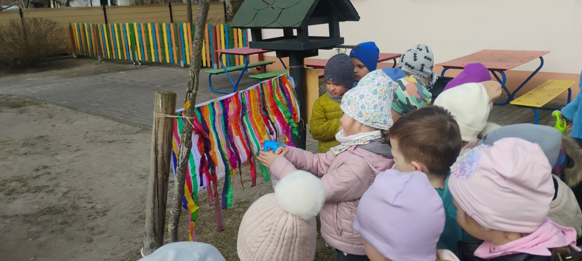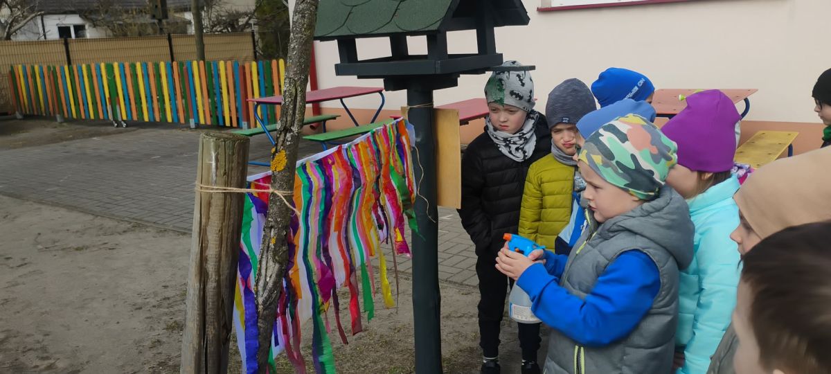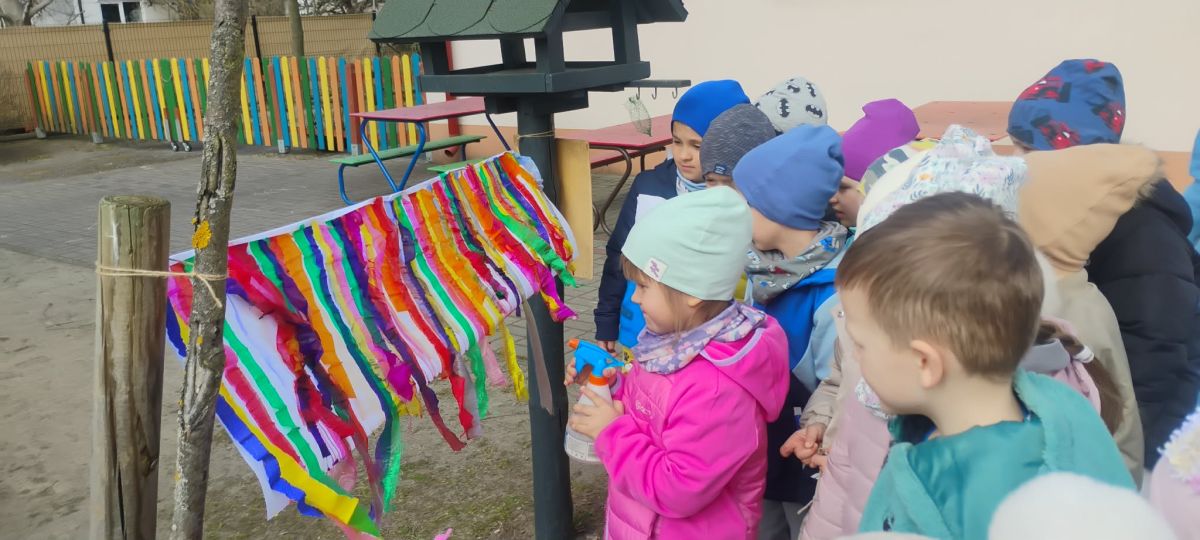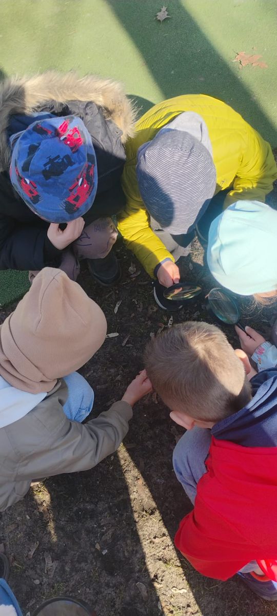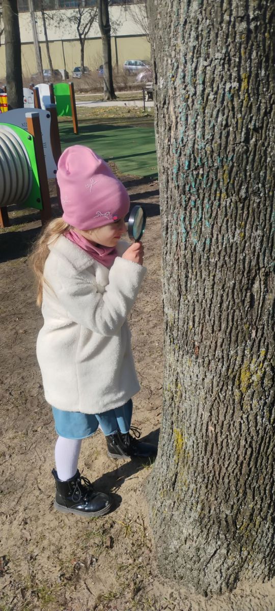 Dzieci z ciekawością rozglądały się wokół, próbując odnaleźć pierwsze oznaki nadchodzącej pory roku. Wyruszyły na plac przedszkolny oraz na spacer w okolicy przedszkola, gdzie – niczym mali odkrywcy – obserwowały przyrodę przez lupy oraz zaznaczały swoje spostrzeżenia na „kartach tropiciela przedwiośnia”.