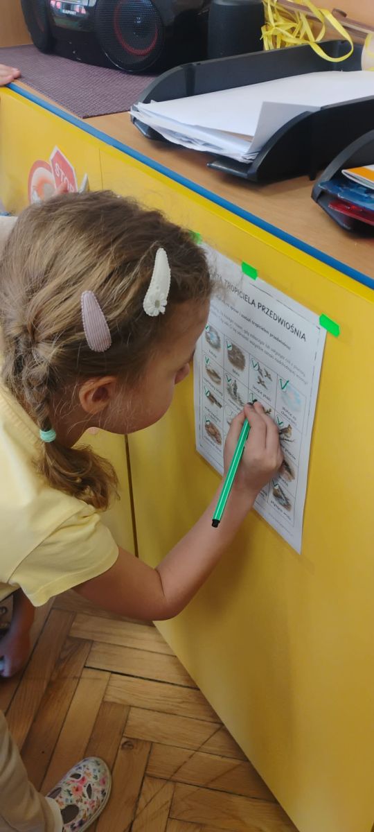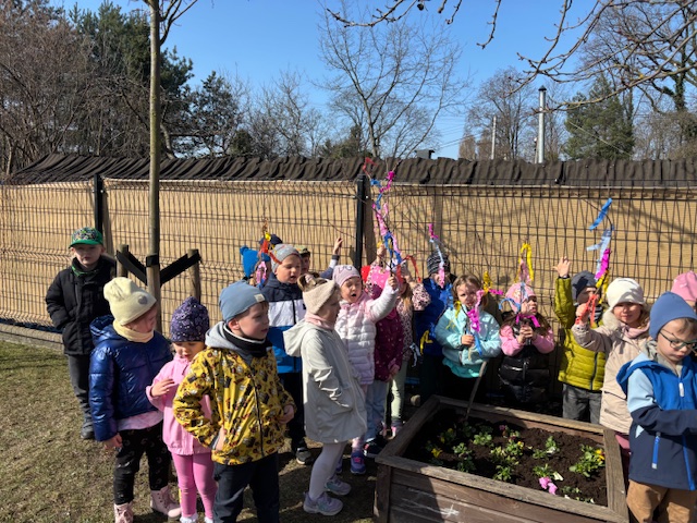 Wspólne poszukiwania pokazały, że Pani Wiosna jest już bardzo blisko – wystarczy uważnie patrzeć, by ją dostrzec. Po zakończonych poszukiwaniach dzieci zgodnie stwierdziły, że Pani Wiosna już do nas przyszła – można ją dostrzec w pierwszych zielonych listkach, pąkach na drzewach oraz cieplejszych promieniach słońca. Z radością dzieliły się swoimi odkryciami, przekonując się, że wiosna jest tuż obok – wystarczy tylko uważnie patrzeć i obserwować przyrodę.