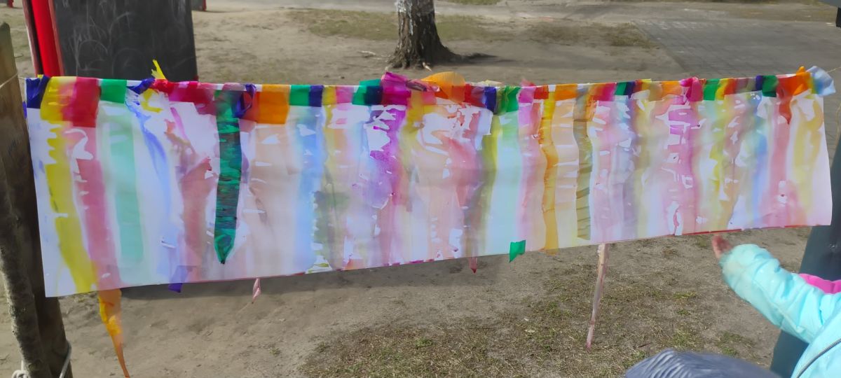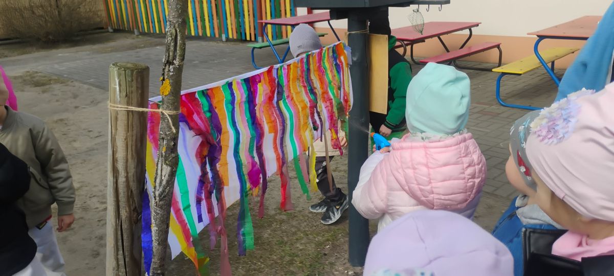 Dodatkowo przedszkolaki wzięły udział w zabawie badawczej polegającej na tworzeniu tęczy. Dzieci eksperymentowały ze światłem i kolorami, obserwując, jak powstaje tęcza, co wzbudziło ich duże zainteresowanie i zachwyt.