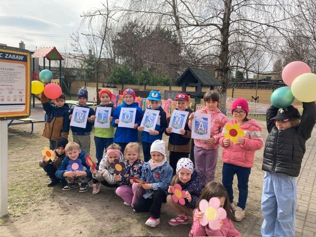 Dzieci z grupy IV z wielką radością powitały nadchodzącą wiosnę na przedszkolnym placu zabaw. Wspólne świętowanie rozpoczęły od radosnego śpiewu piosenki „Nareszcie wiosna”, która wprowadziła wszystkich w pogodny, pełen energii nastrój.