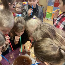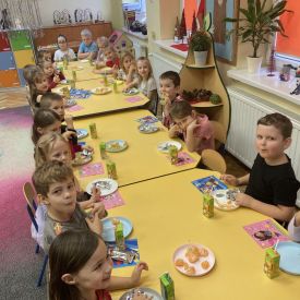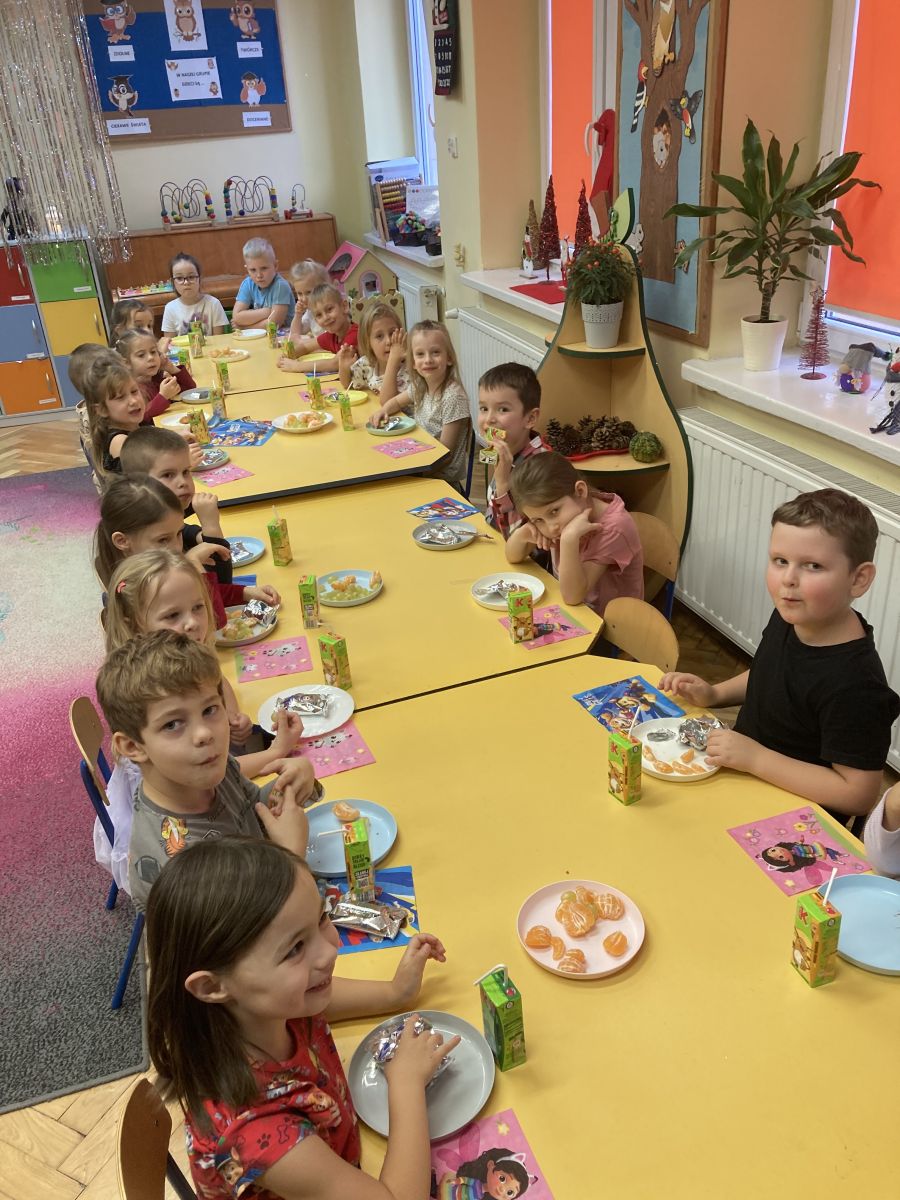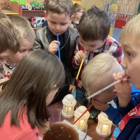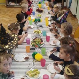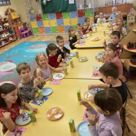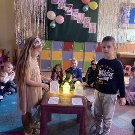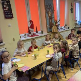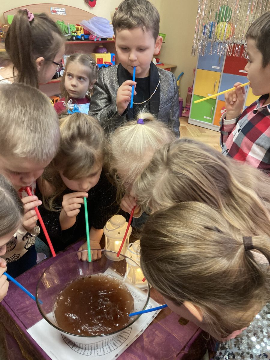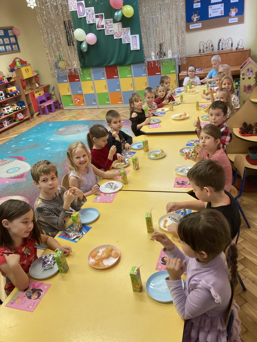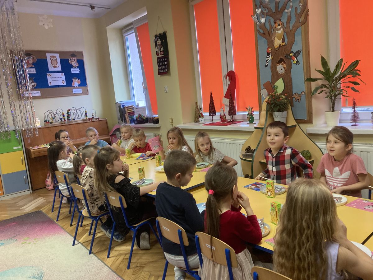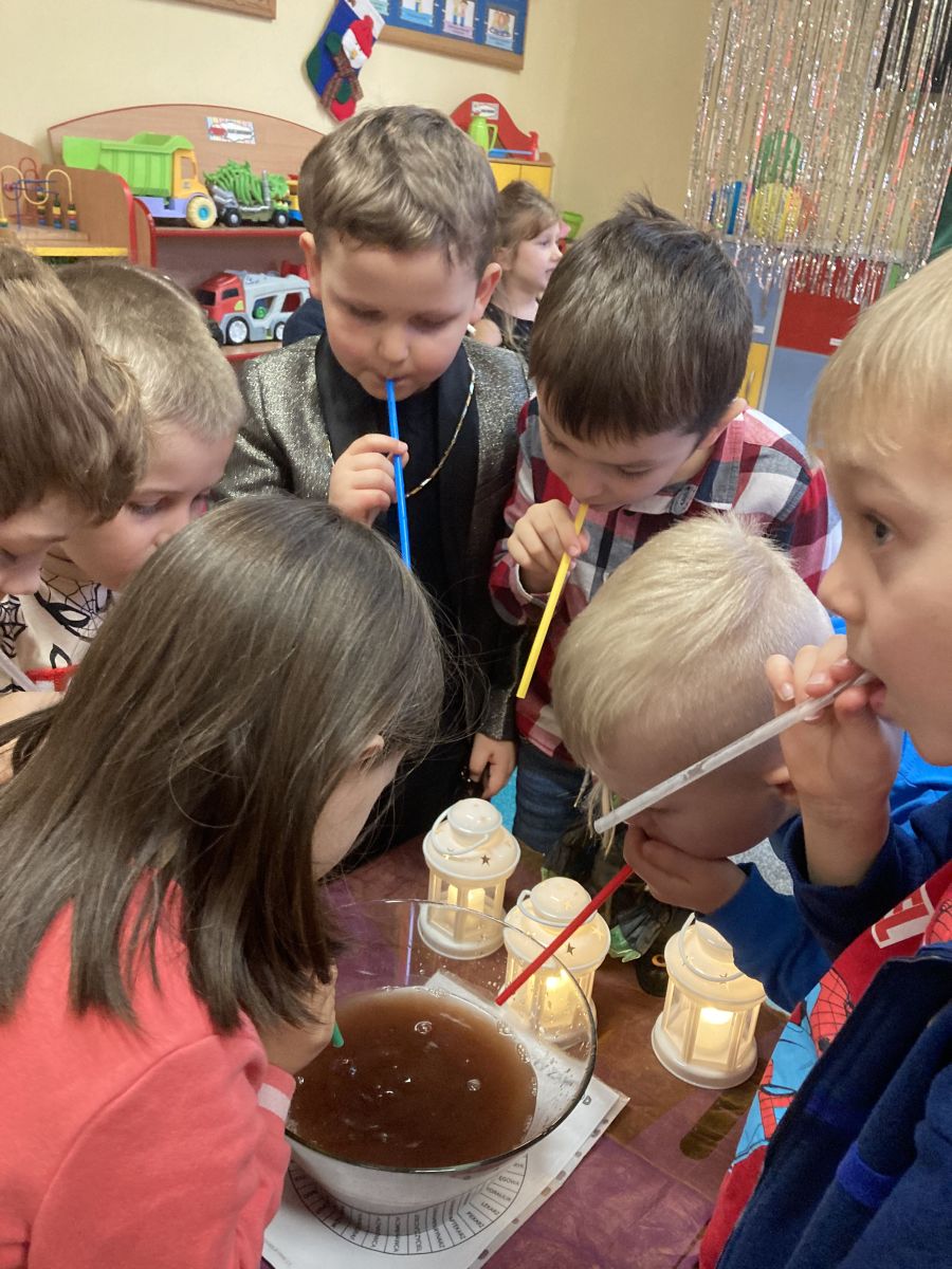 • Tworzyły własne „przepowiednie marzeń”, rozwijając wyobraźnię i ucząc się radosnego podejścia do tradycji. Po wszystkich emocjach na dzieci czekała nagroda – słodki poczęstunek przygotowany przez rodziców, który smakował jak prawdziwe „królewskie słodkości”.