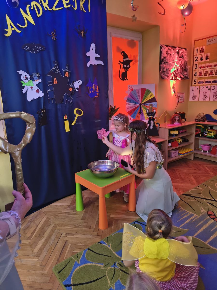 Sale mieniły się kolorami, a atmosfera była jak w zaczarowanej krainie. Każdy przedszkolak poczuł się jak bohater własnej historii, a wspólna zabawa zamieniła się w magiczne święto pełne fantazji, humoru i dziecięcej radości.