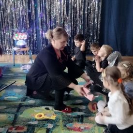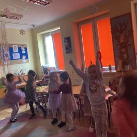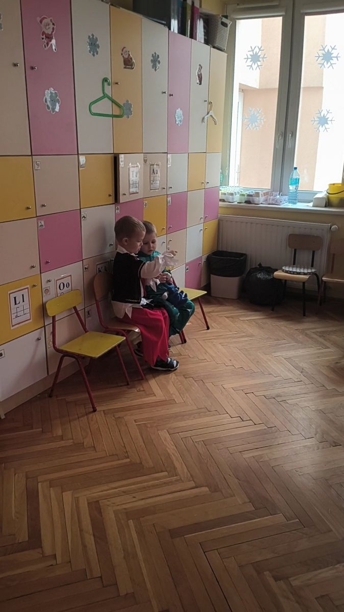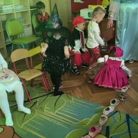 • Brały udział w „Wróżbie z butów” – ustawiając buty w szeregu, dzieci sprawdzały, który jako pierwszy dotrze do drzwi.