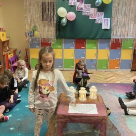 • Bawiły się w „Magiczne kubeczki” – pod kubeczkami ukryte były symbole przyszłych przygód.