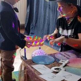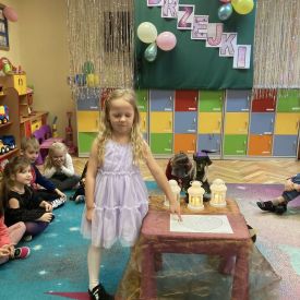 • Odkrywały magiczne wróżby – losując gwiazdki, karteczki, serduszka i tajemnicze symbole, które w zabawny sposób podpowiadały, co może czekać je w przyszłości.